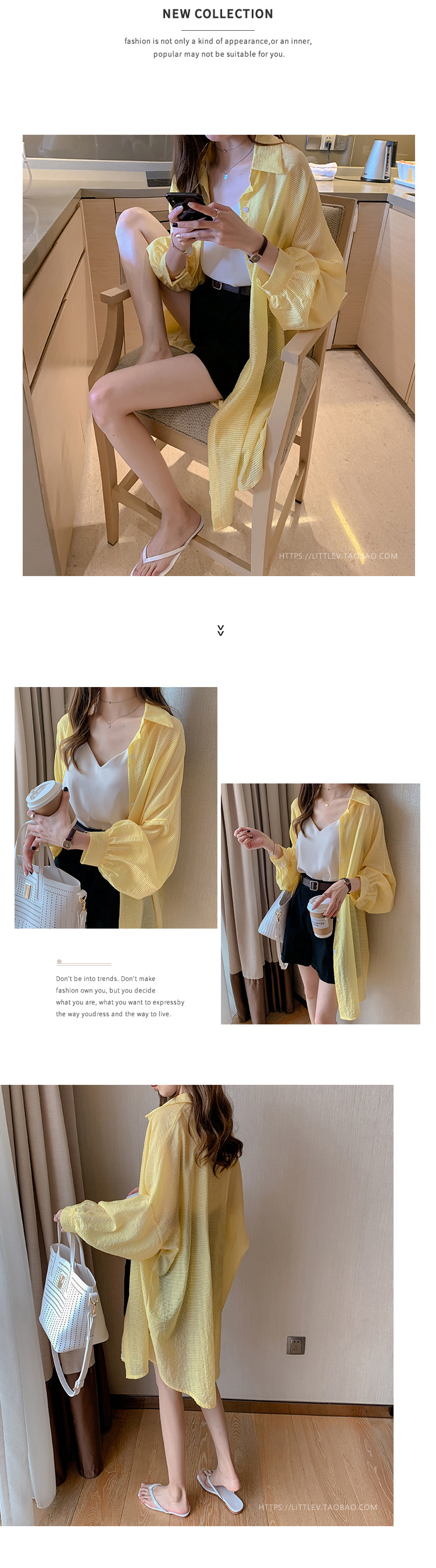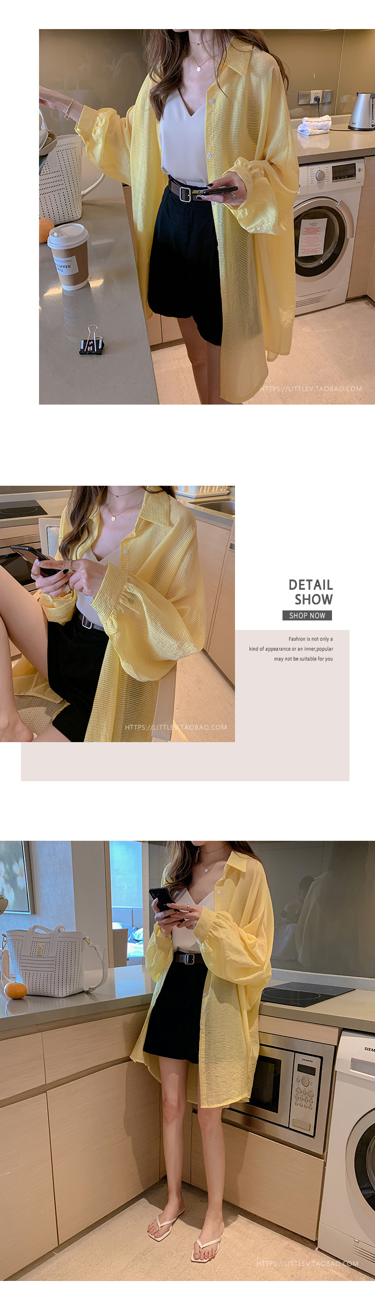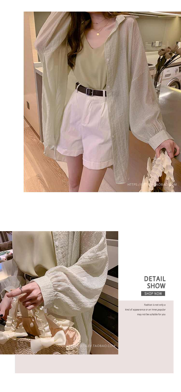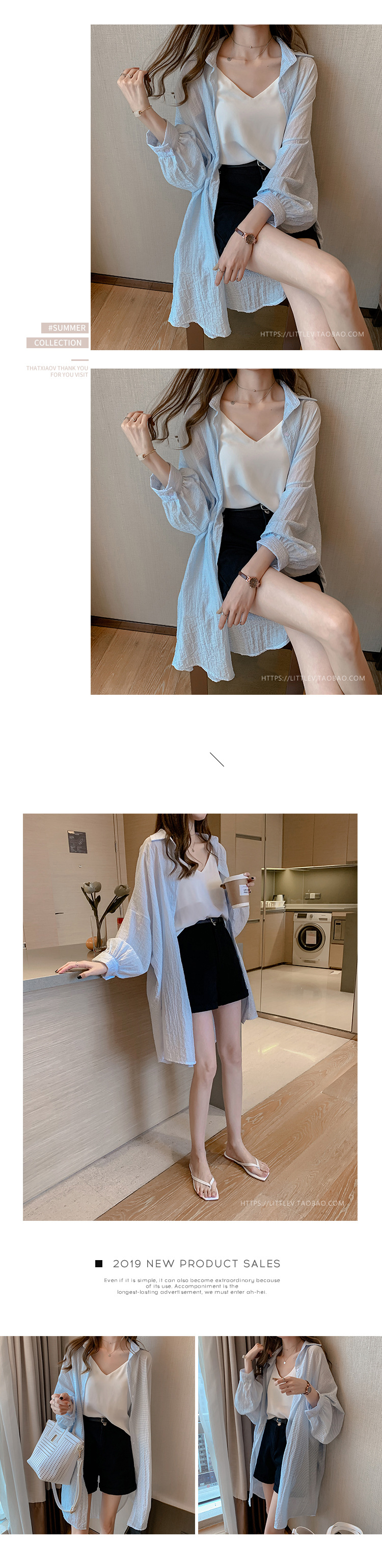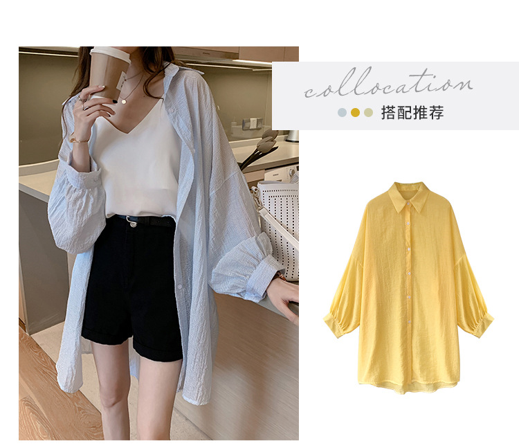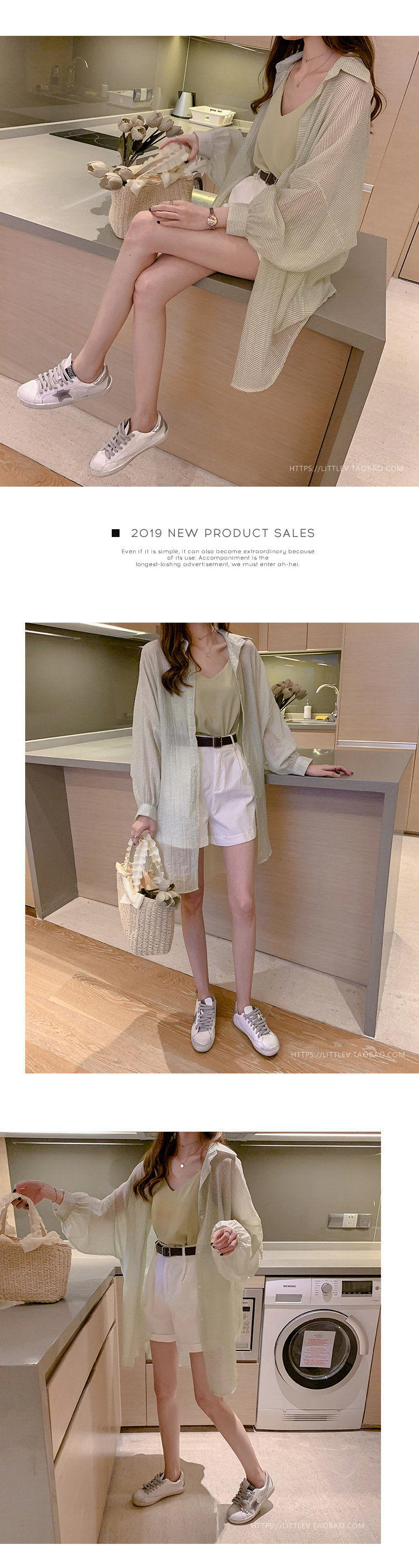 2019 새로운 패션 중간 길이 스트라이프 셔츠 여성용 디자인 센스 틈새 탑 긴팔 자외선 차단제 셔츠 얇은 재킷