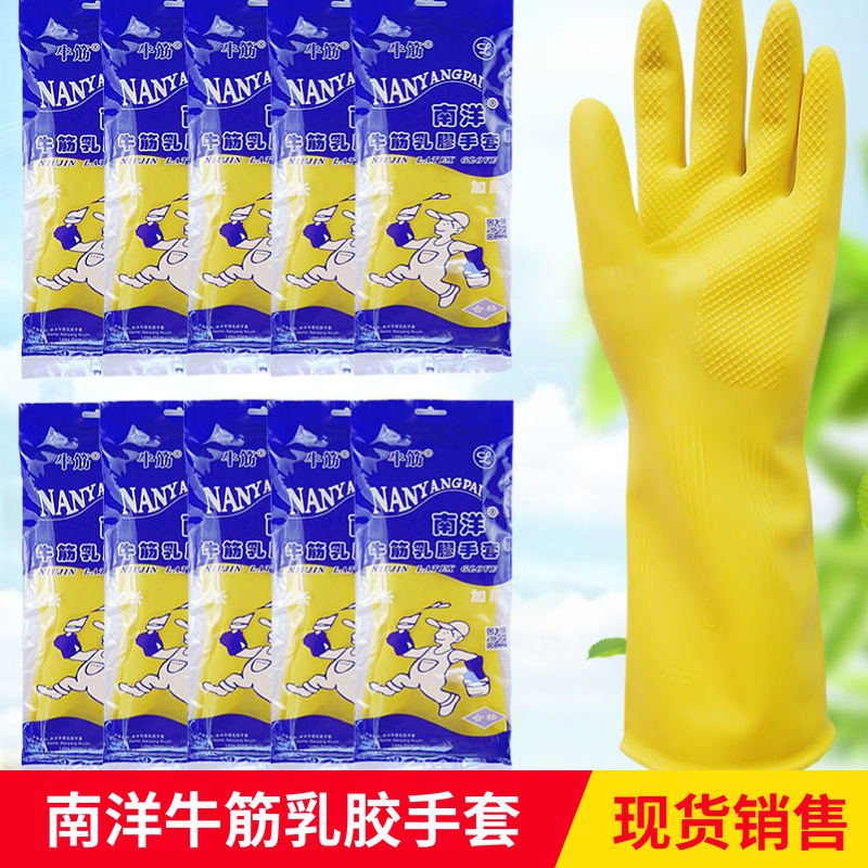 난양 쇠고기 힘줄 라텍스 장갑 설거지 가정용 청소 고무 가죽 장갑 두꺼운 산 및 알칼리 방지 라텍스 장갑스토어 가기