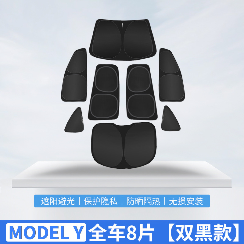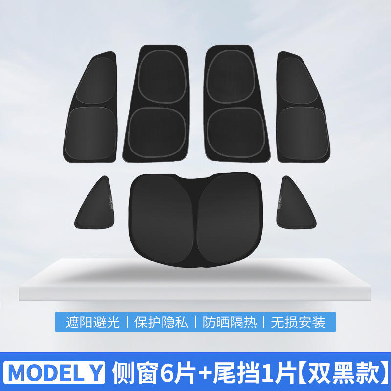 • [더블 블랙] 모델 Y 사이드 윈도우 6 조각 꼬리 1 조각 (개인 정보 보호 차양)