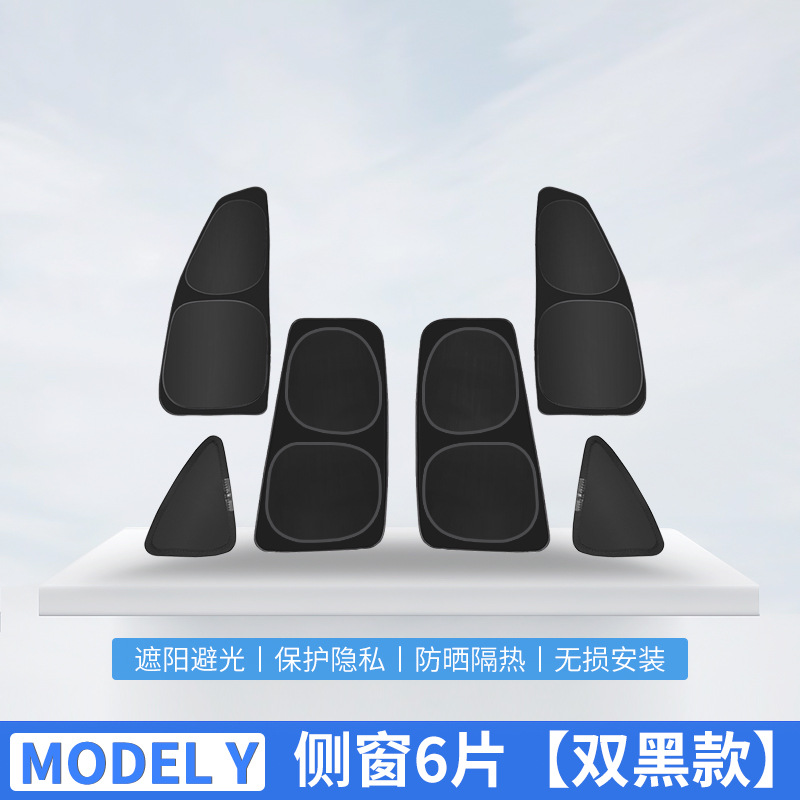 • [더블 블랙] 모델 Y 사이드 윈도우 6 조각 (개인 정보 보호 차양)