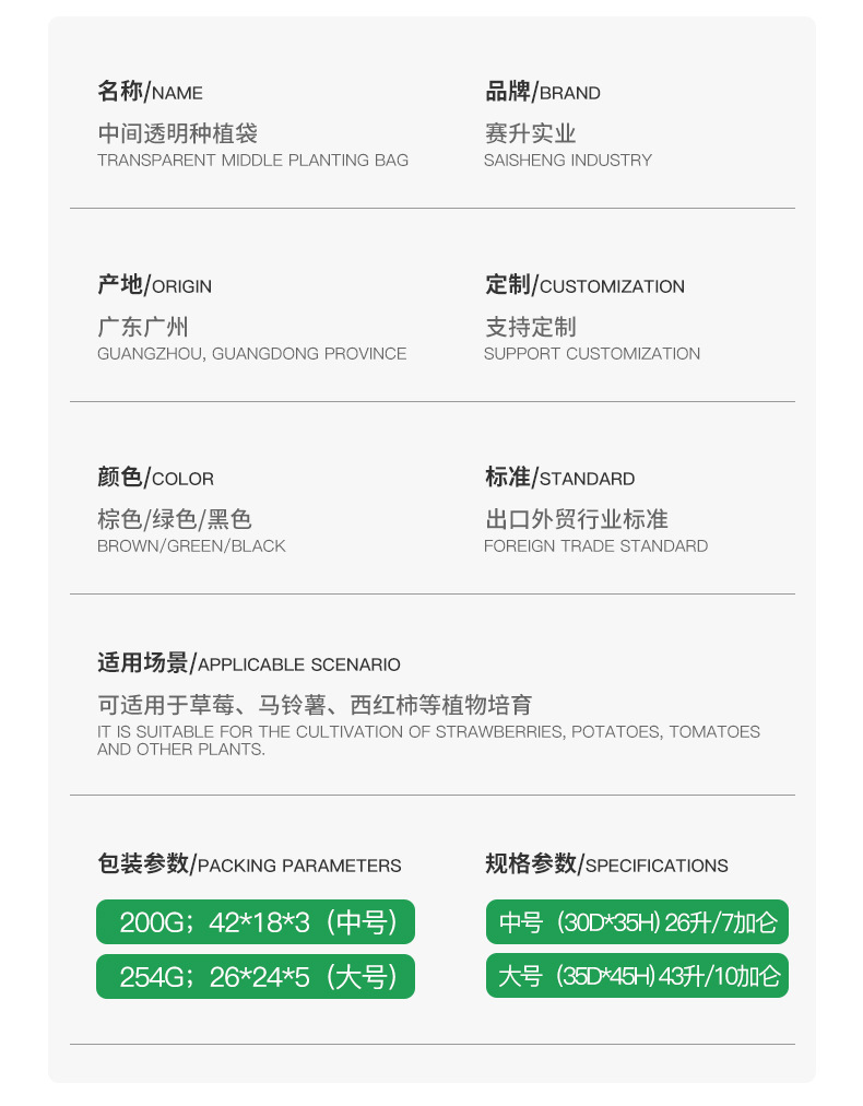 중간 투명 식물 재배 가방 감자 토마토 재배 가방 덮여 감자 재배 가방 국경 간 공급