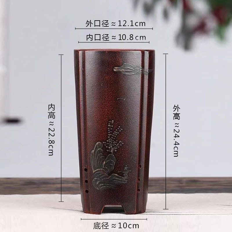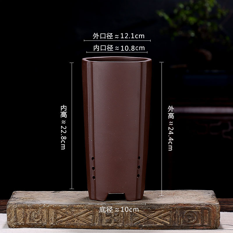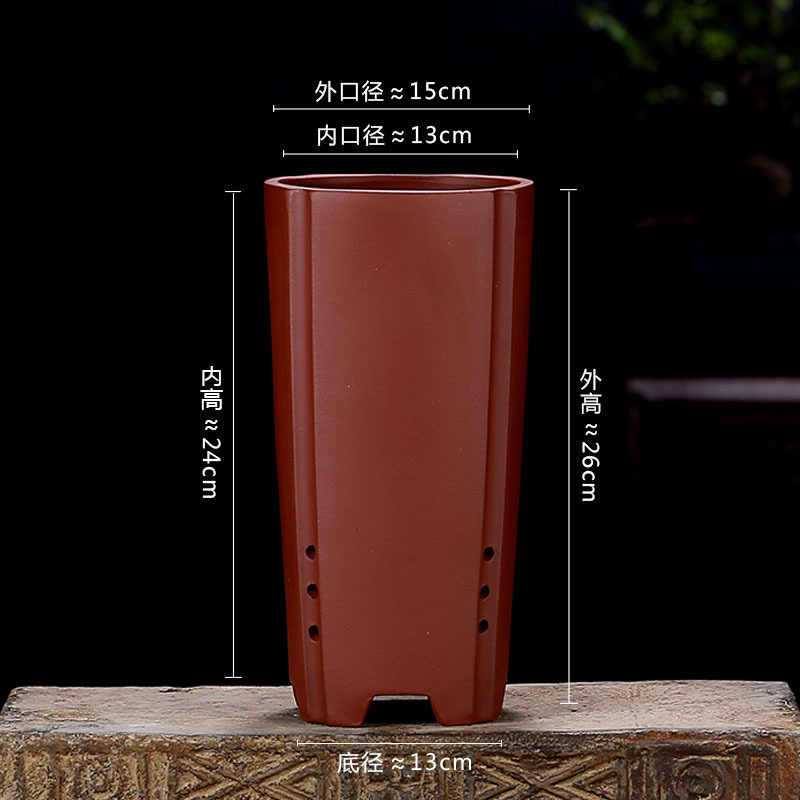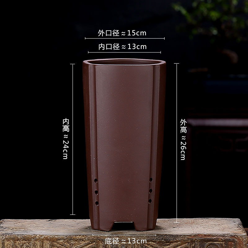 이싱 사팡 자색 점토 난초 절벽 화분 대형 높은 원통형 수제 세라믹 올드 스타일 클래식 화분