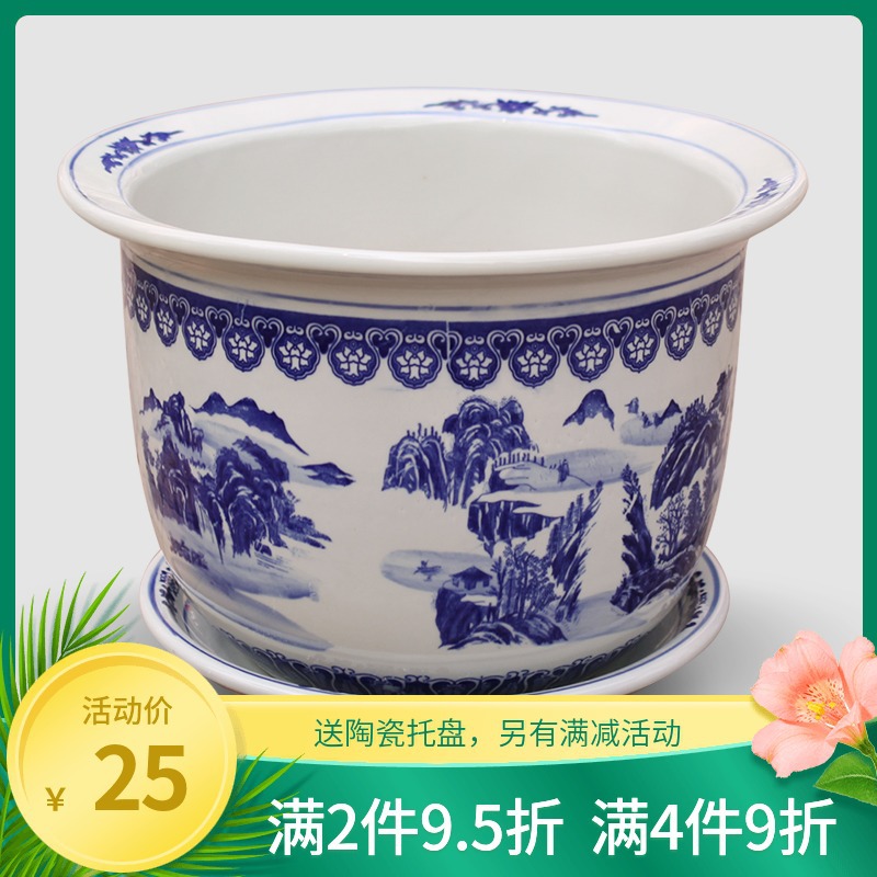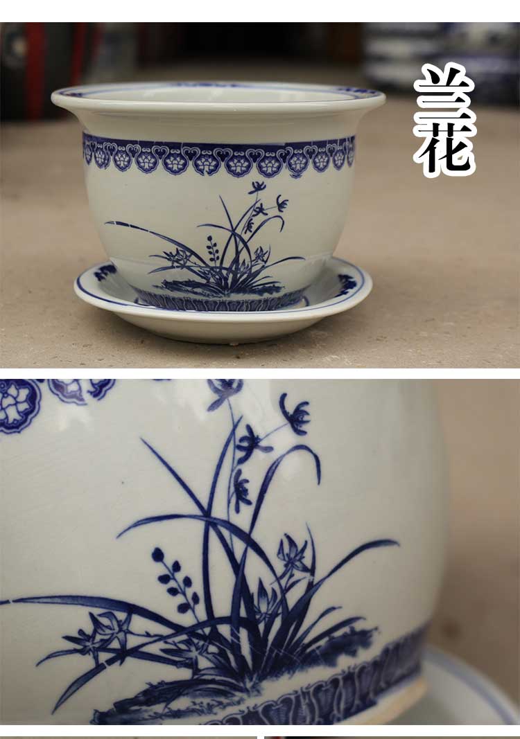 트레이 파란색과 흰색 도자기 꽃 그릇 발코니 수경법 녹색 심기 녹색 지네와 Jingdezhen 초대형 세라믹 화분
