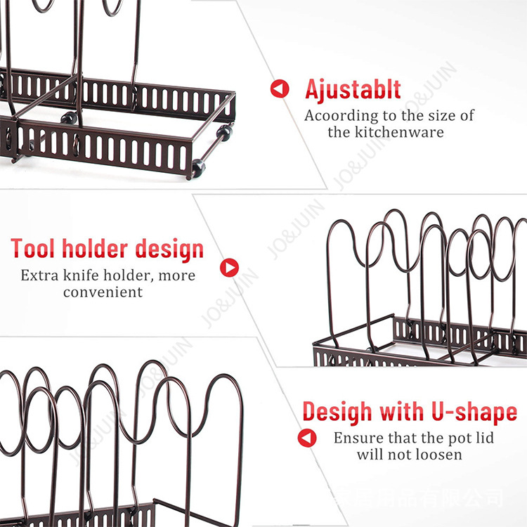 다기능 접이식 테이블탑 주방 수납 선반 철제 냄비 뚜껑 보관 선반 다층 조절 가능 수납 냄비 선반