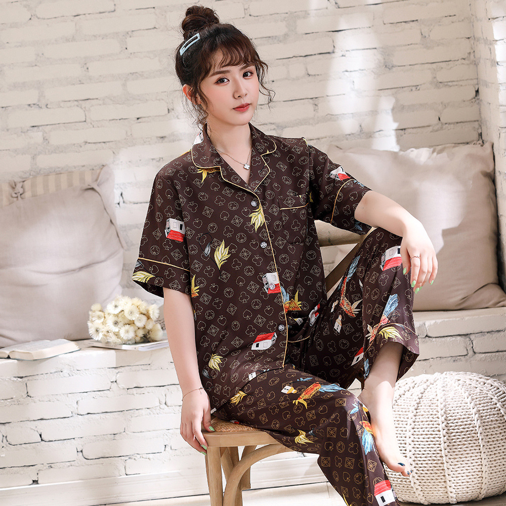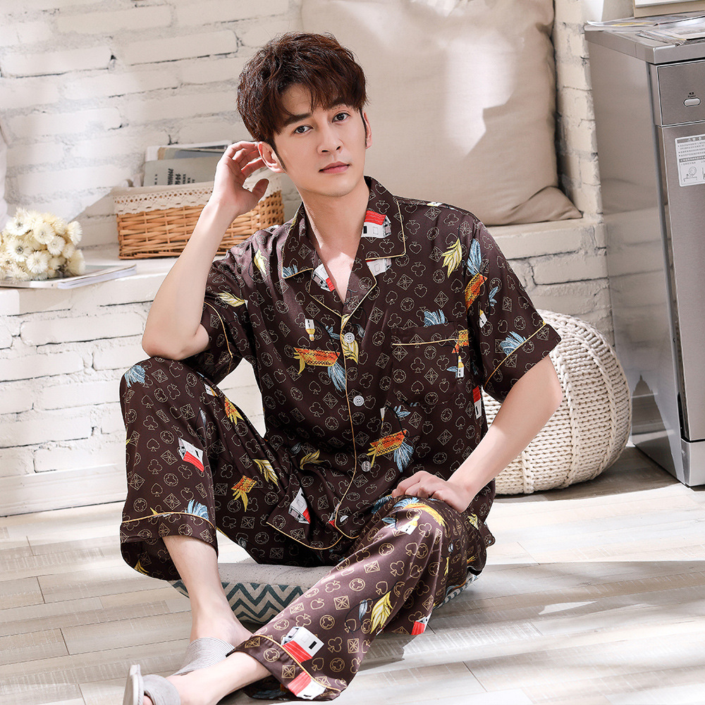 2022 여름 새로운 커플 잠옷 여자의 아이스 실크 반팔 패션 인터넷 연예인 유행 가정 의류 세트 남성 제조 업체스토어 가기