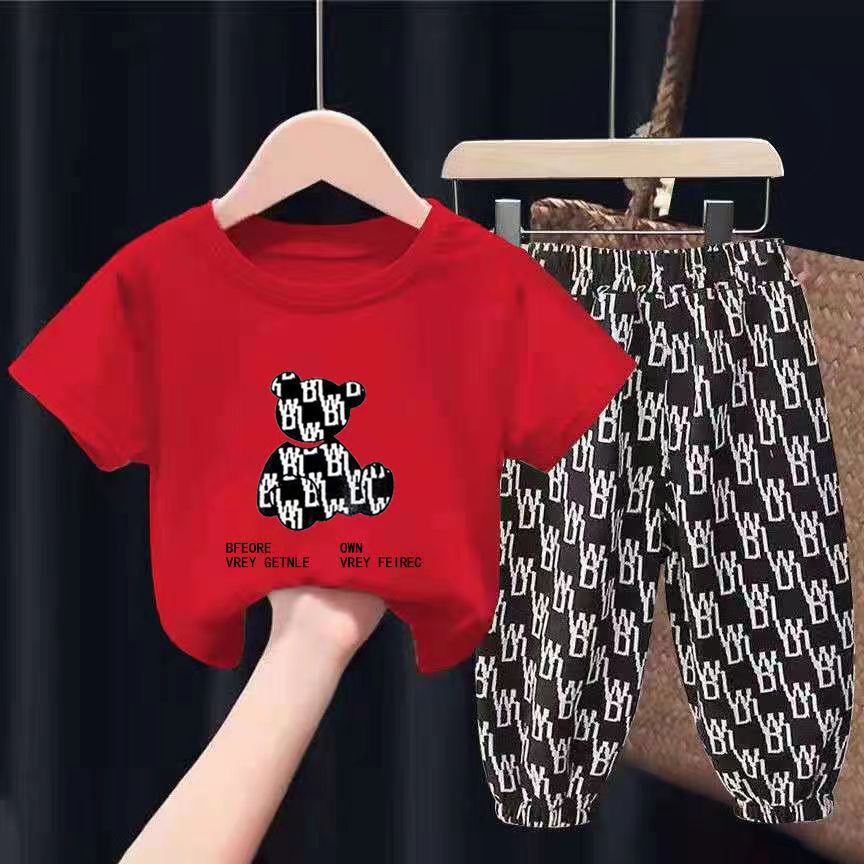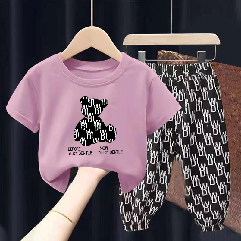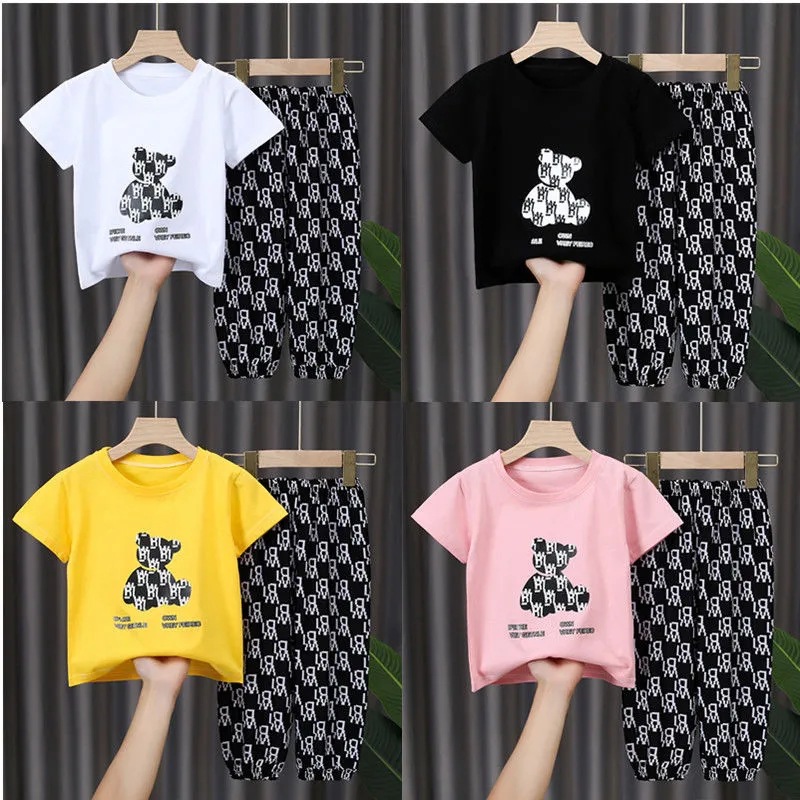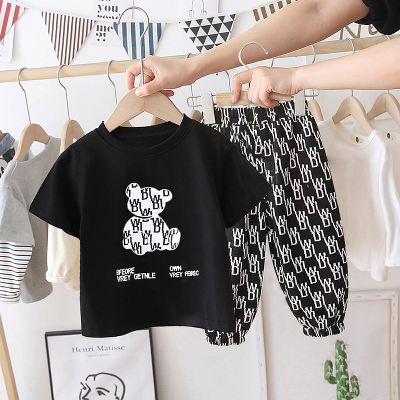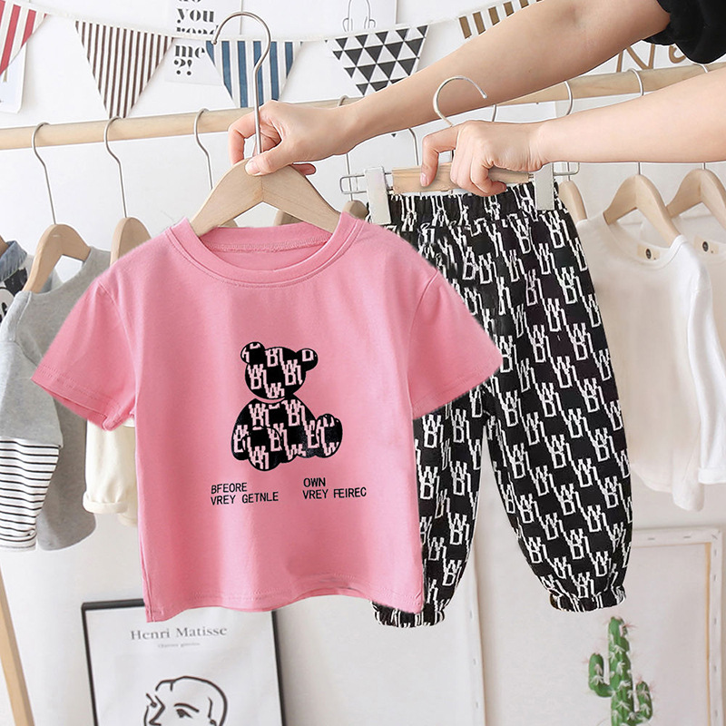 새로운 아동복 여름 중소형 아동면 아동 티셔츠 여아 탑 남아 반팔 만화 귀여운 세트