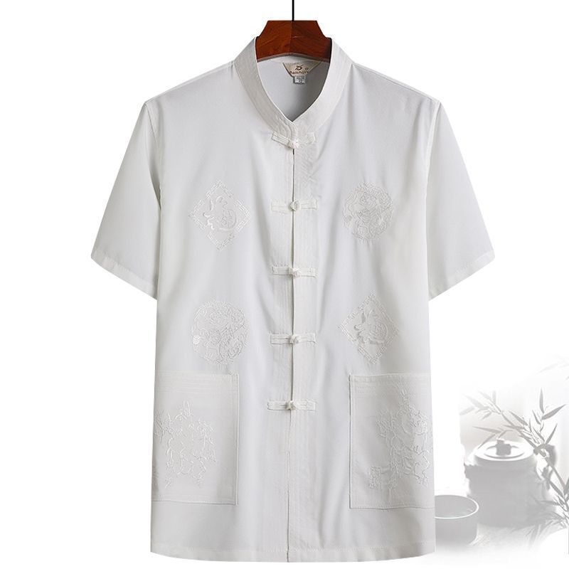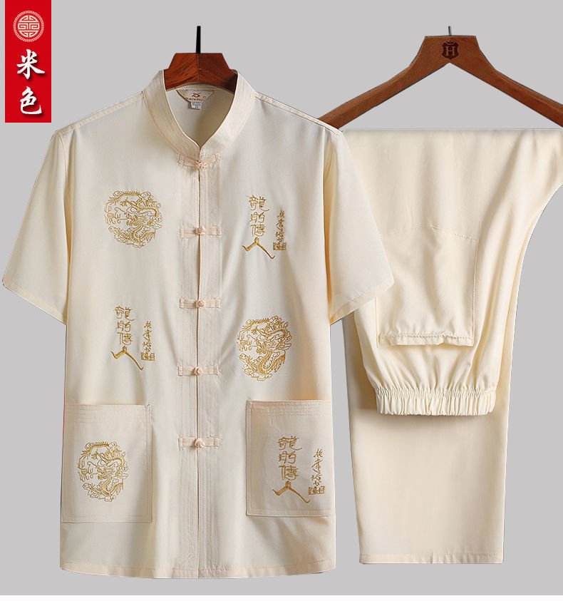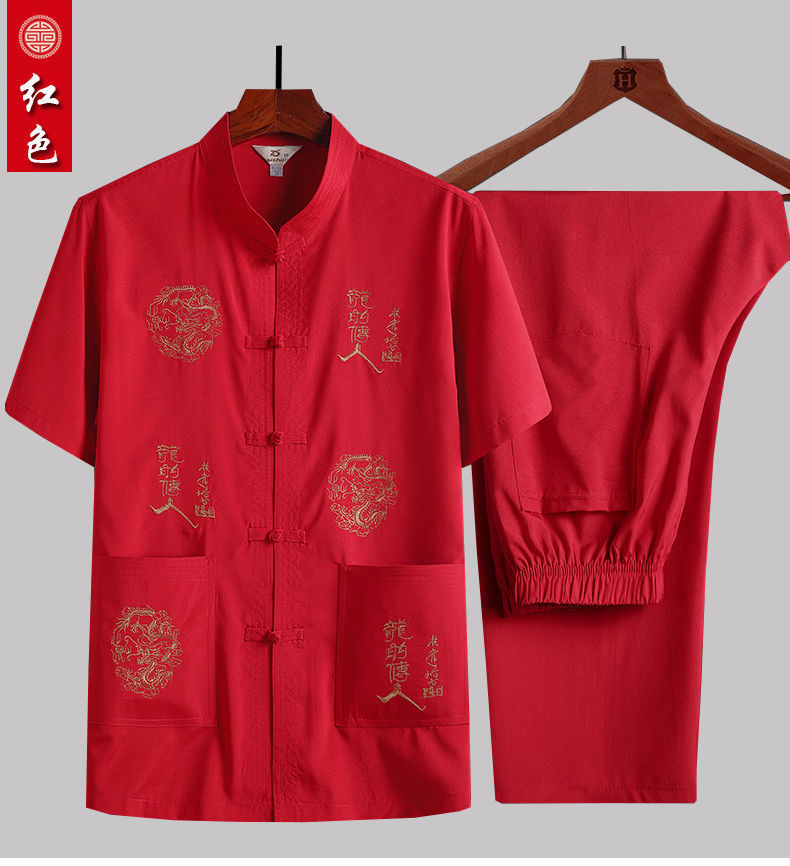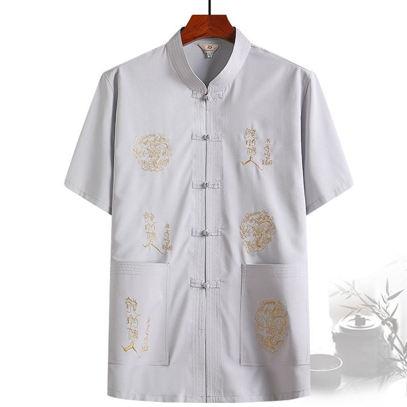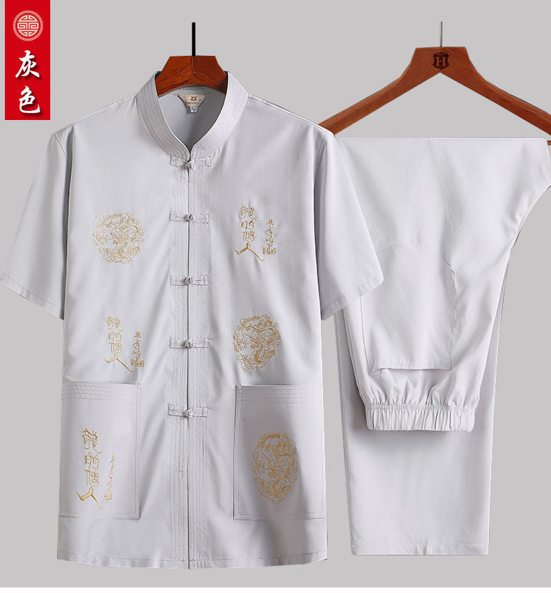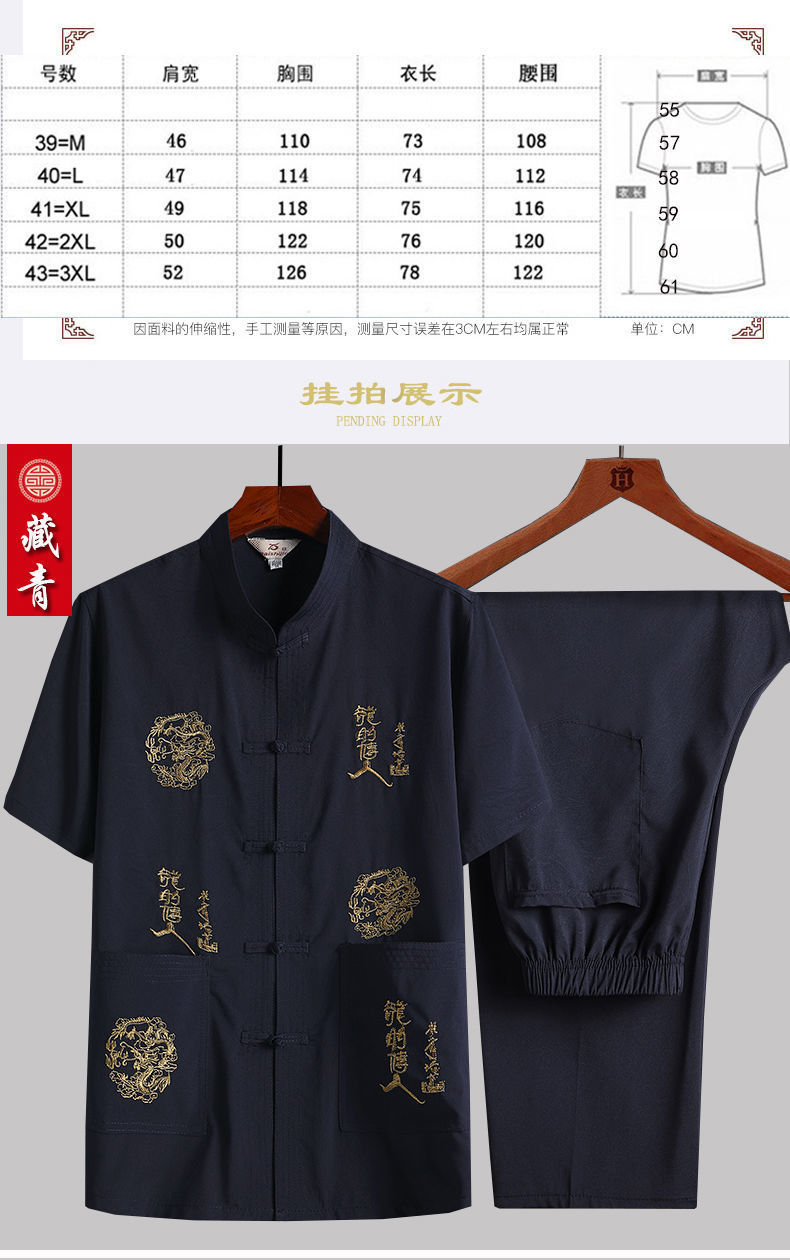 중년 및 노인 여름 세트 당 세트 남자의 반팔 셔츠 자수 아버지 중국 여가 아침 운동 할아버지 세트 Hanfu스토어 가기