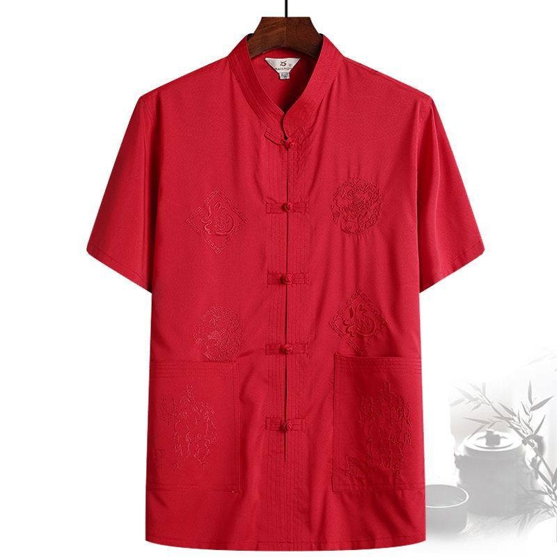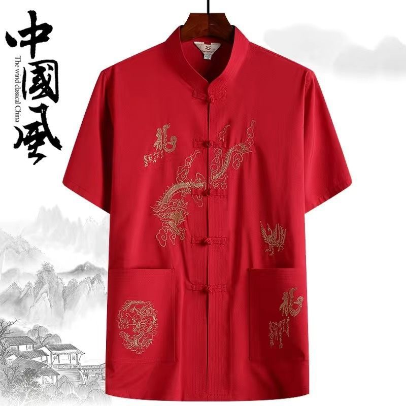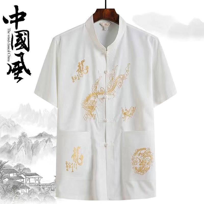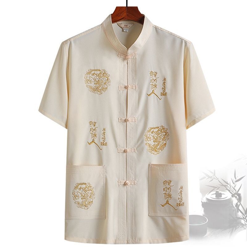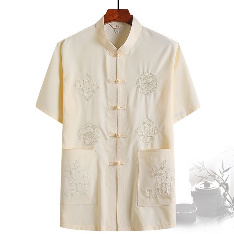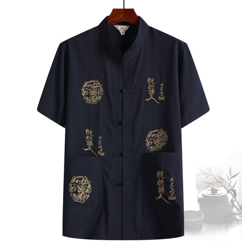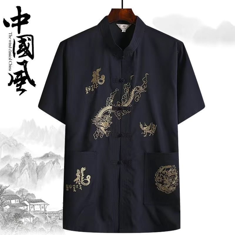 중년 및 노인 여름 세트 당 세트 남자의 반팔 셔츠 자수 아버지 중국 여가 아침 운동 할아버지 세트 Hanfu스토어 가기