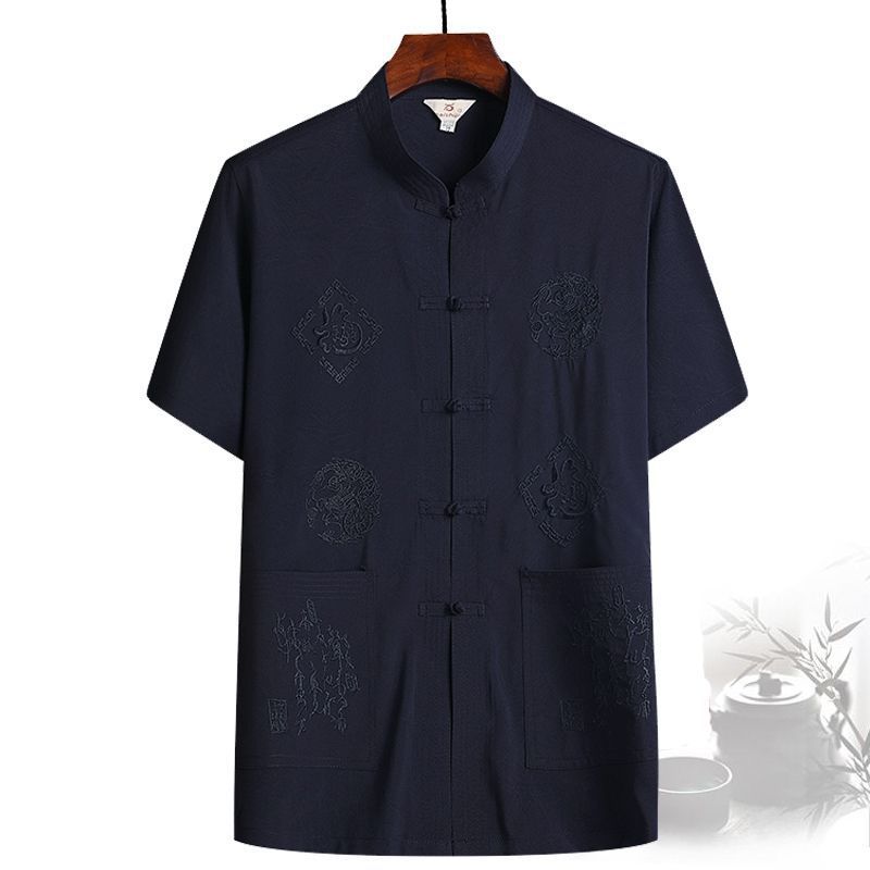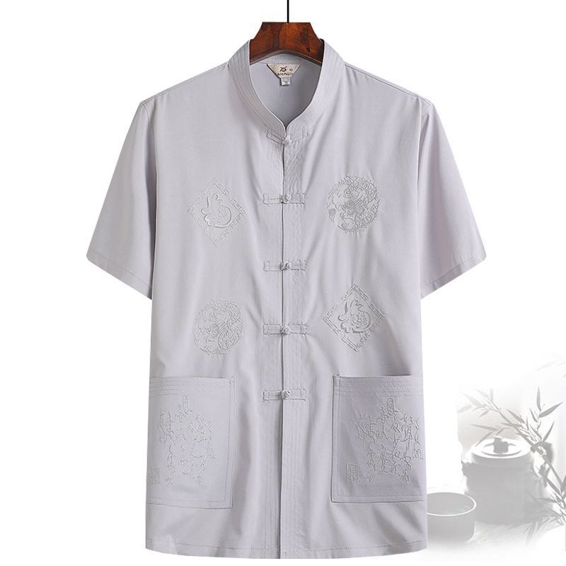 중년 및 노인 여름 세트 당 세트 남자의 반팔 셔츠 자수 아버지 중국 여가 아침 운동 할아버지 세트 Hanfu