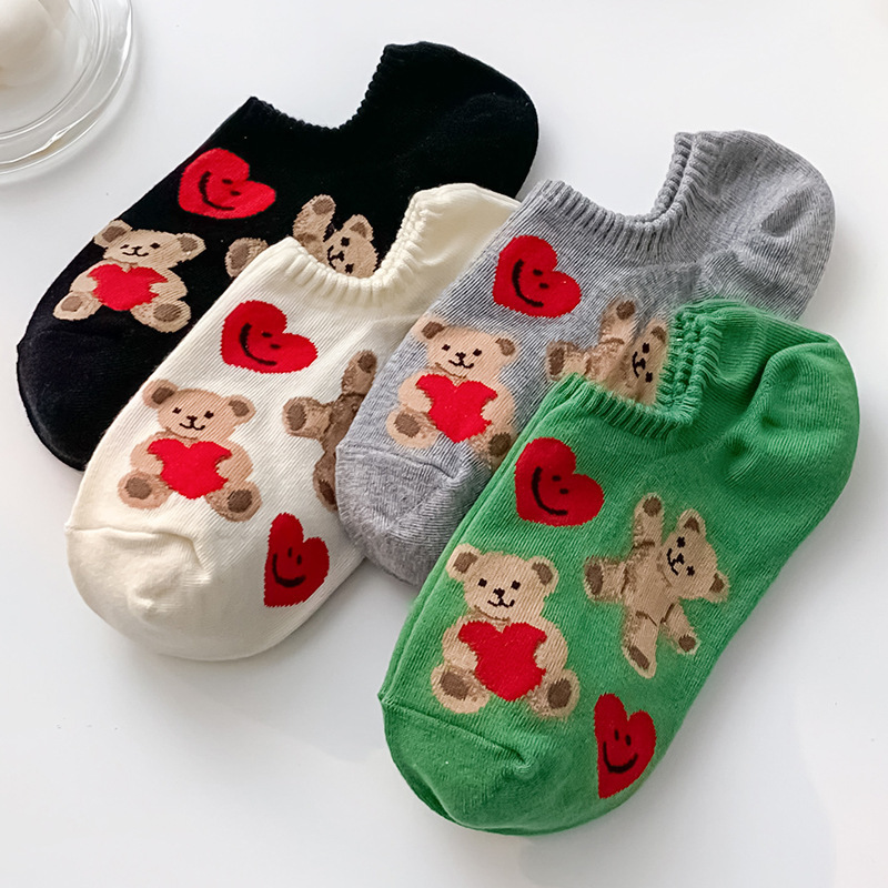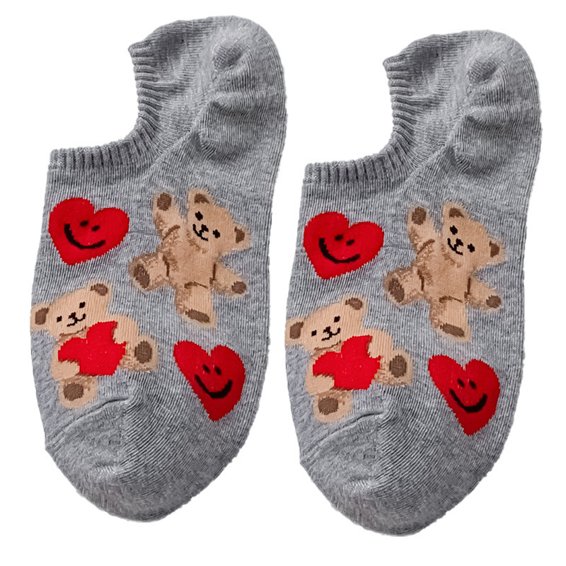 일본식 귀여운 곰 사랑 인스 타 그램 스타일 유행 짧은 양말 여름 얇은 면 양말 여성용 얕은 입 보이지 않는 보트 양말 여성용