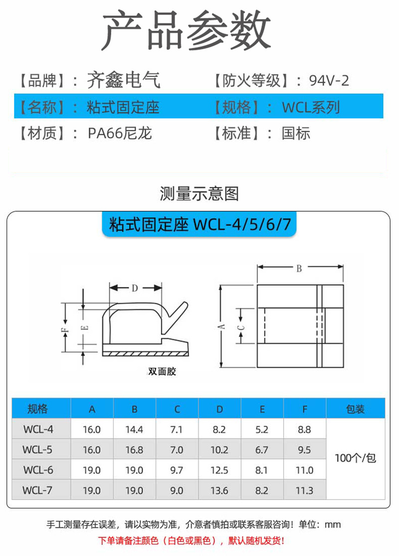WCL 시리즈 접착 와이어 고정 클립 자동차 와이어 주최자 와이어 홀더 클립 배선 주최자