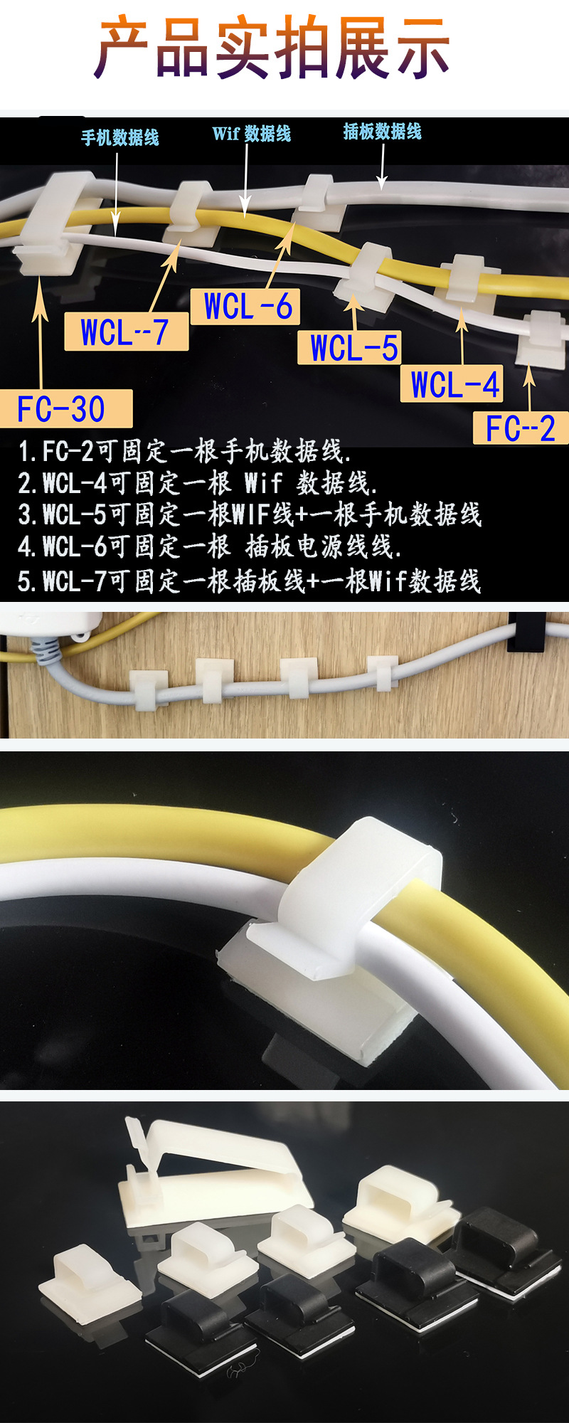 WCL 시리즈 접착 와이어 고정 클립 자동차 와이어 주최자 와이어 홀더 클립 배선 주최자스토어 가기