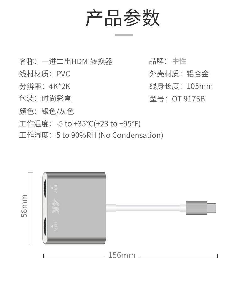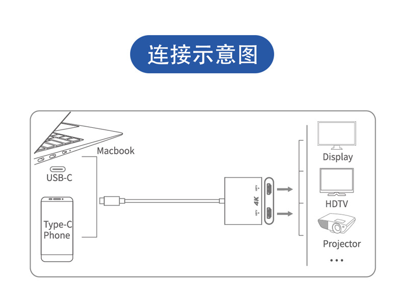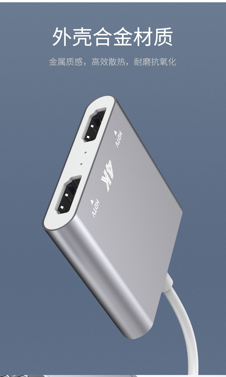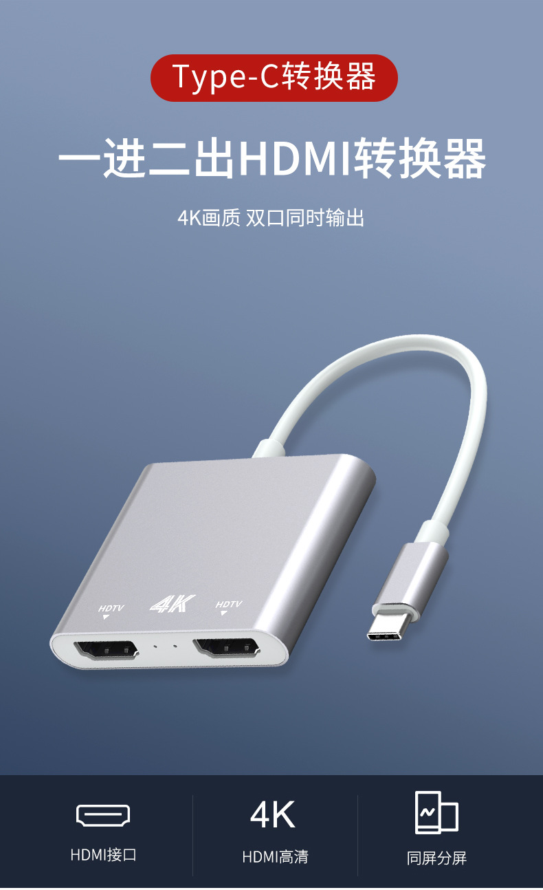 电脑usb扩展坞typec转双hdtv拓展器多功能转换器方便convertor