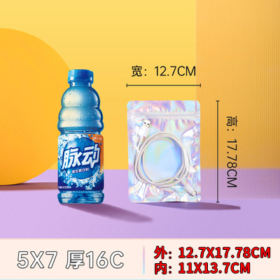 레이저 투명 자체 밀봉 백 알루미늄 반짝이 음양 뼈 가방 컬러 데이터 케이블 밀봉 백 바 보석 포장 백스토어 가기