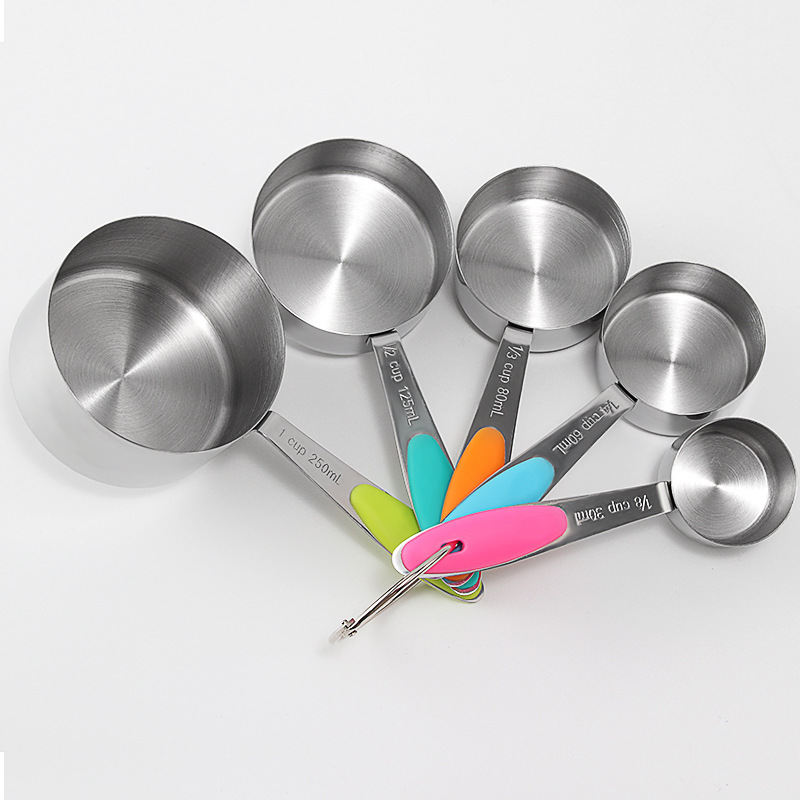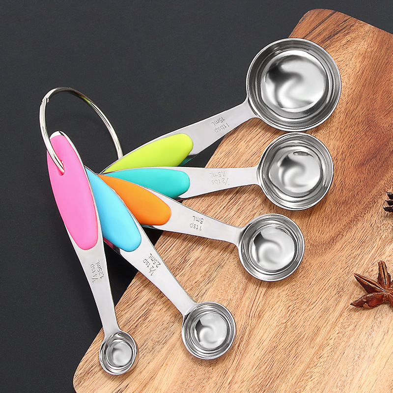 스폿 스테인레스 스틸 측정 컵 숟가락 컬러 핸들 5 조각 세트 스케일 식품 등급 베이킹 도구 주방 측정 스푼