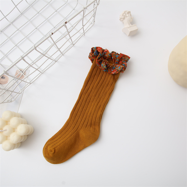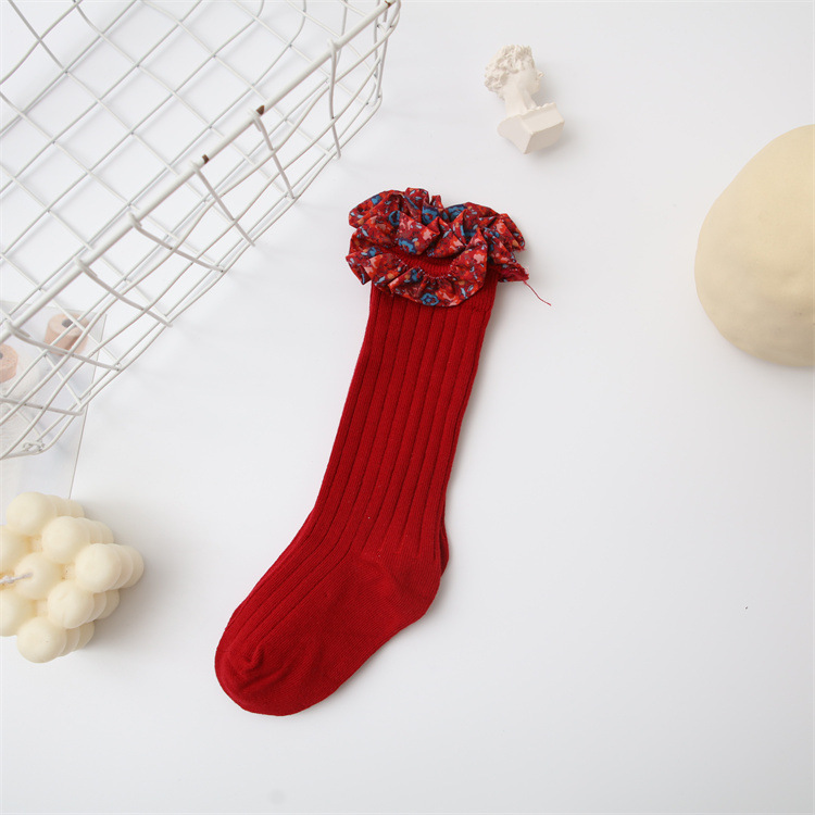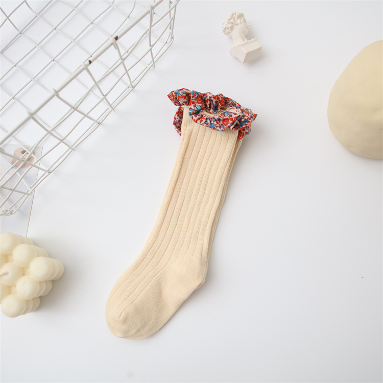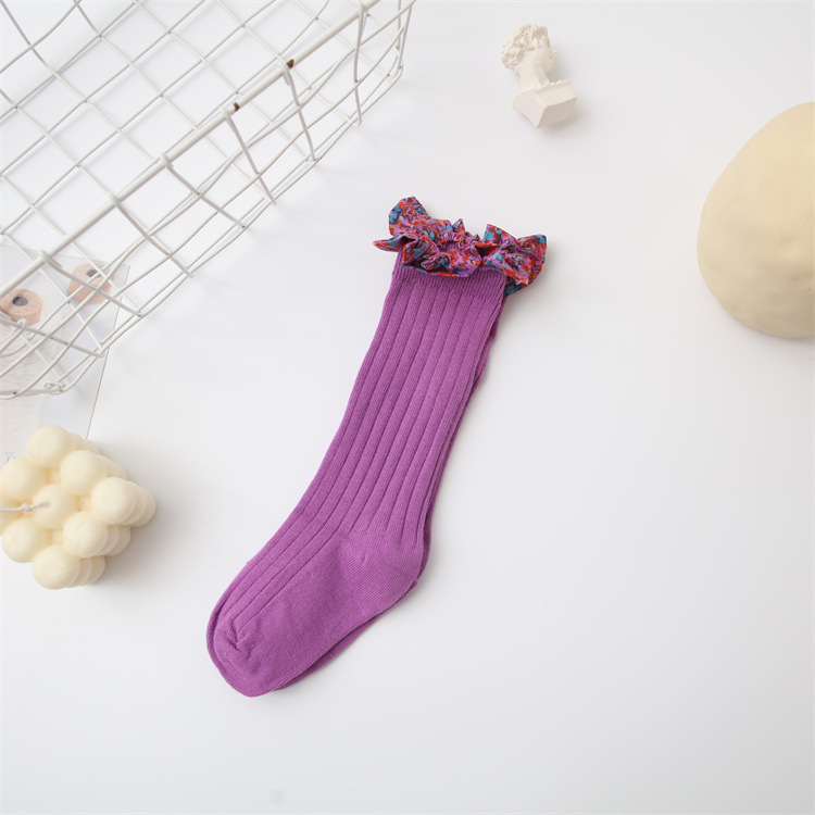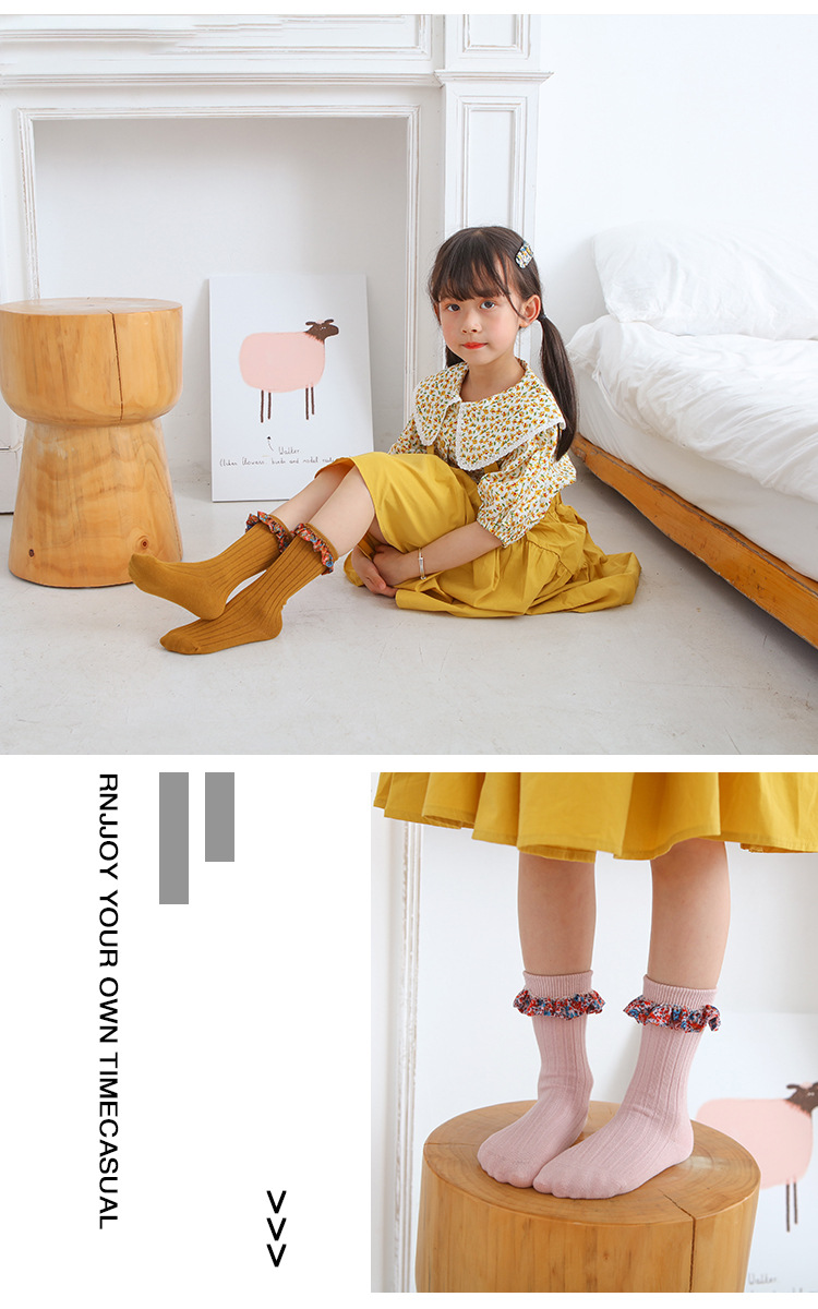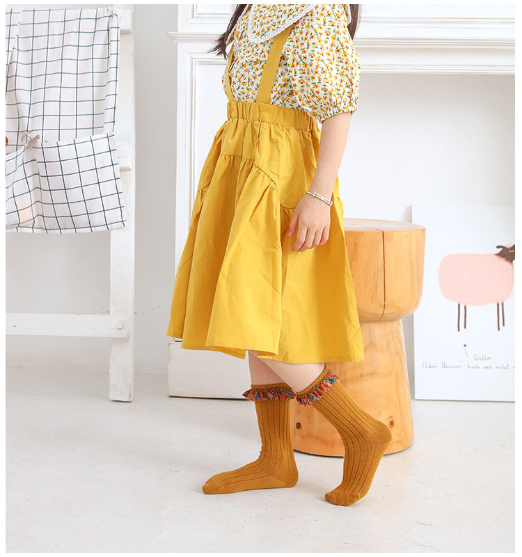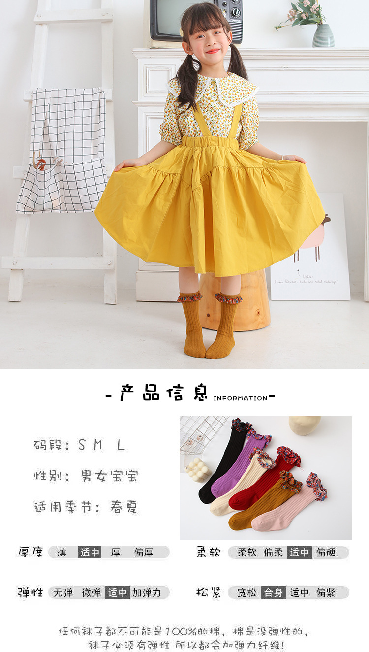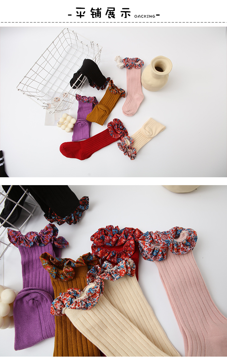 새로운 여아 긴 양말 빗질 면 레이스 어린이 양말 더블 바늘 스테레오 아기 양말 봄과 가을 아기 양말