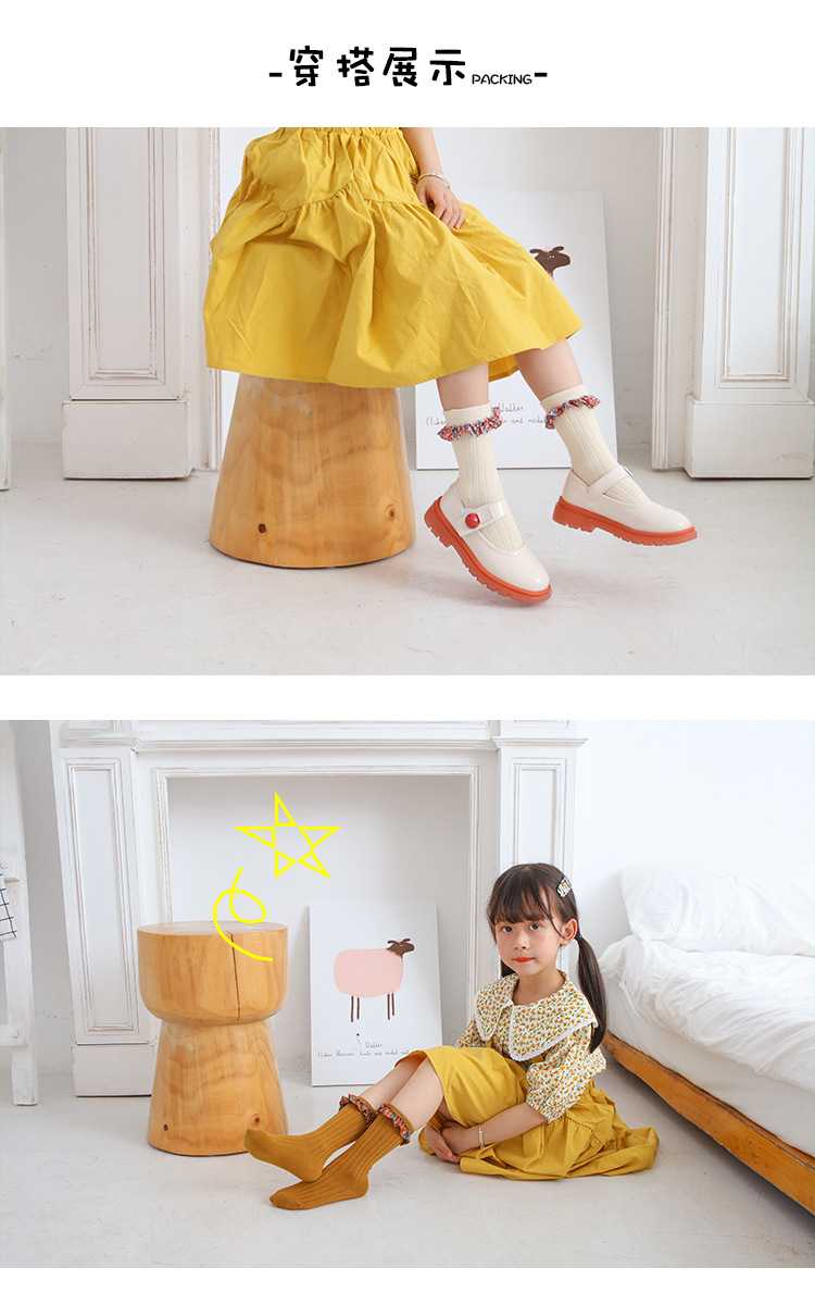 새로운 여아 긴 양말 빗질 면 레이스 어린이 양말 더블 바늘 스테레오 아기 양말 봄과 가을 아기 양말스토어 가기