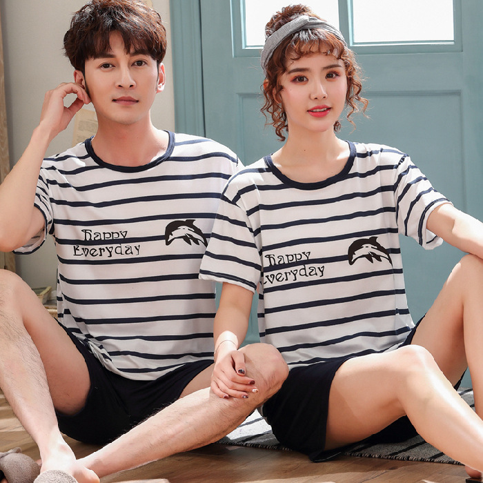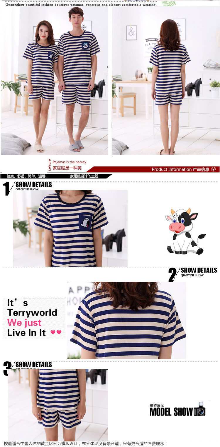 외국 무역 반팔 커플 잠옷 세트 여름 여자의 남자의 가정 옷 도매 머리카락의 세대