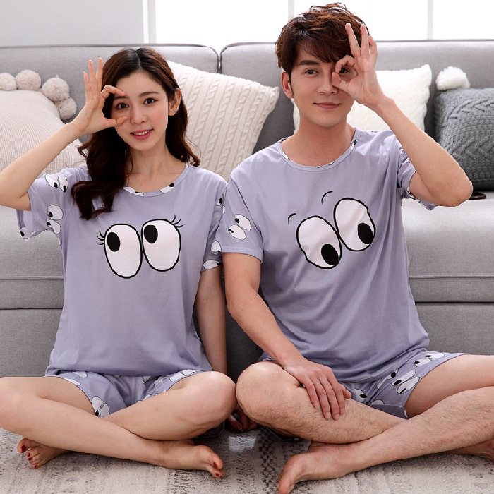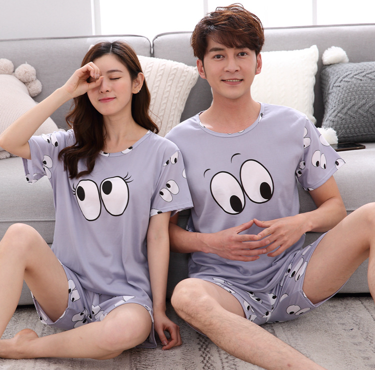 외국 무역 반팔 커플 잠옷 세트 여름 여자의 남자의 가정 옷 도매 머리카락의 세대스토어 가기