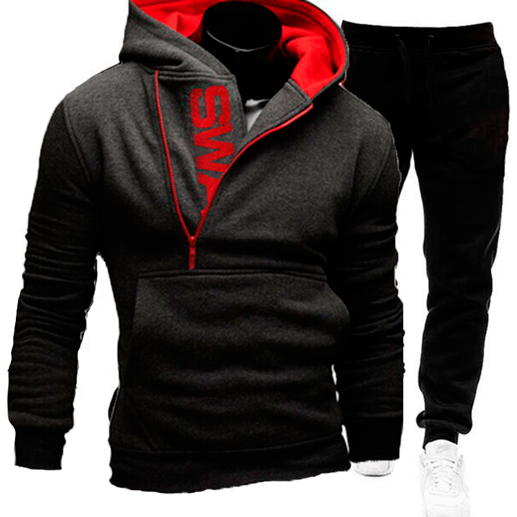 AliExpress의 2020 새로운 배치 이베이 새로운 풀오버 사이드 지퍼 대비 색상 후드 남성 벨벳 스웨터 세트