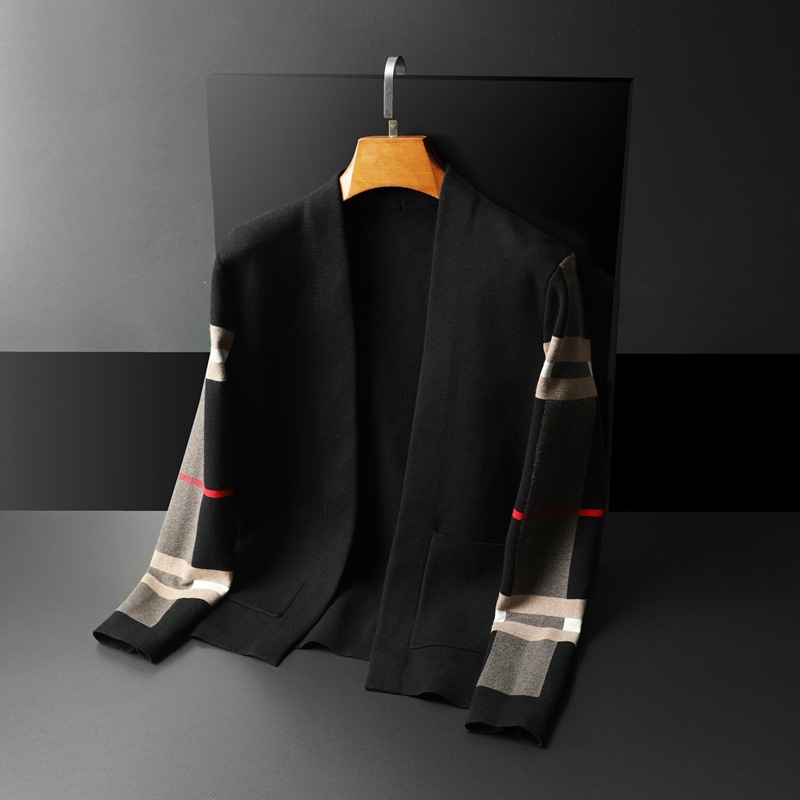 남성 니트 가디건 스웨터 슬림핏 가을 유럽 스타일 브이넥 체크무늬 스웨터 자켓 남성 유럽풍 슬림핏 슬림한 핏