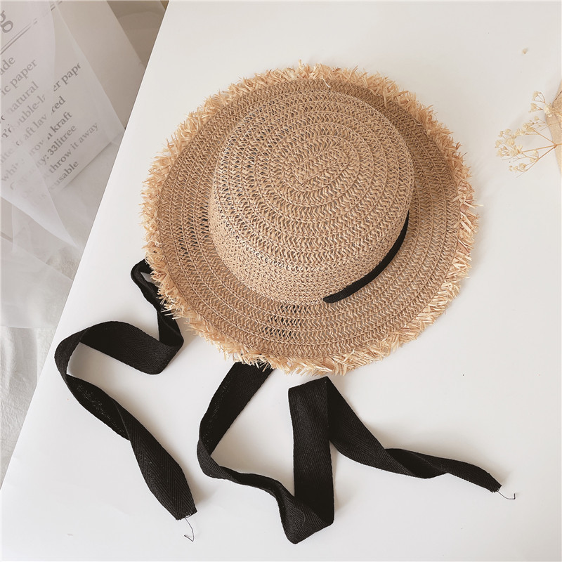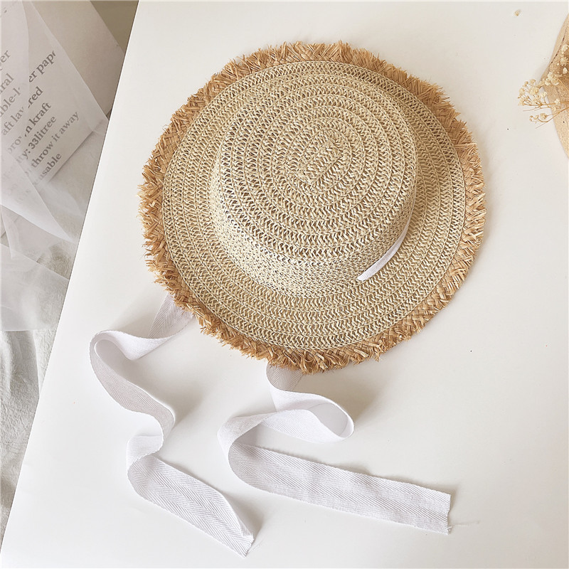 어린이 밀짚 모자 부모-자식 플랫 탑 라파엘 한국식 간단한 태양 모자 소년과 소녀를위한 태양 모자 아기 여름 태양 모자