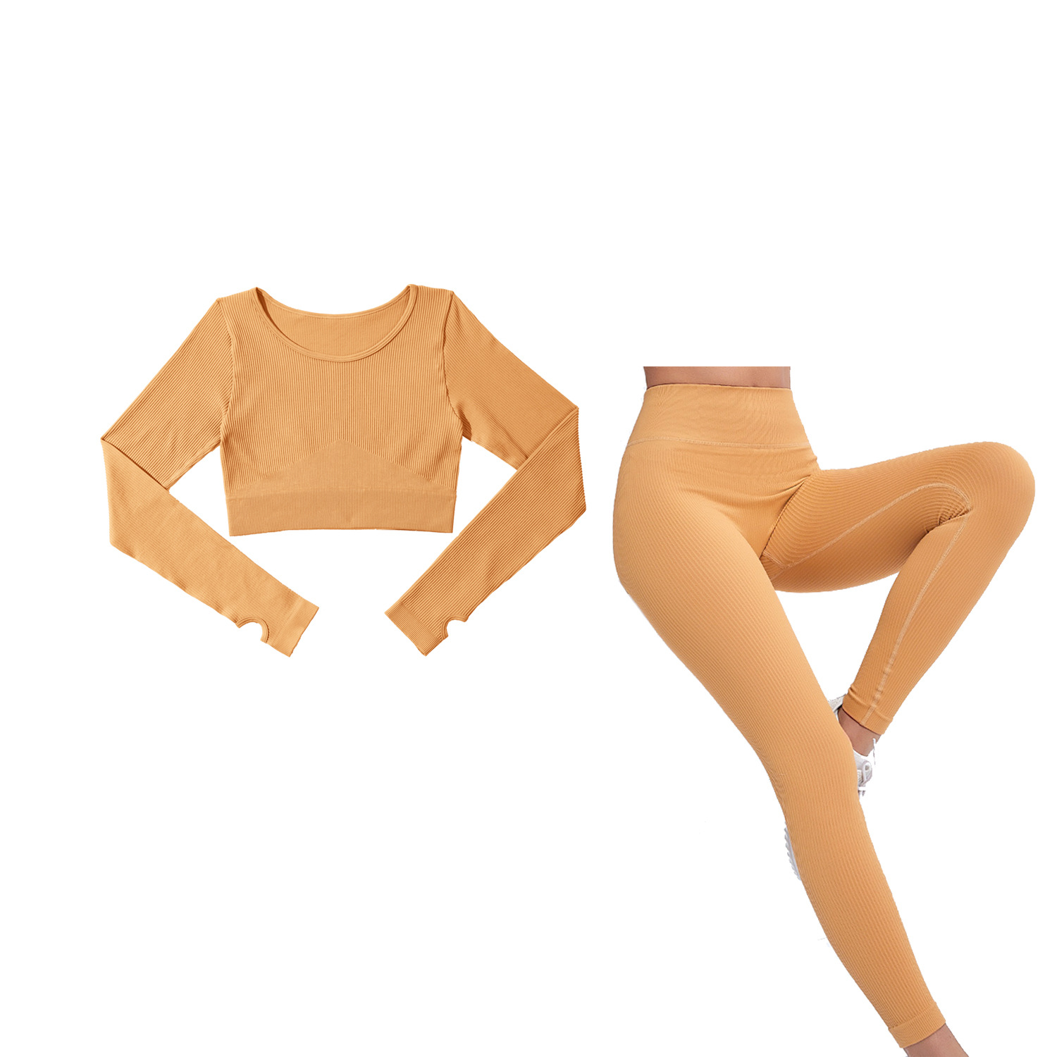 재고! 유럽과 미국의 크로스 보더 섹시 스포츠 조끼 피트니스 세트 여성의 세트 긴 소매 바지 원활한 요가 세트 XL스토어 가기