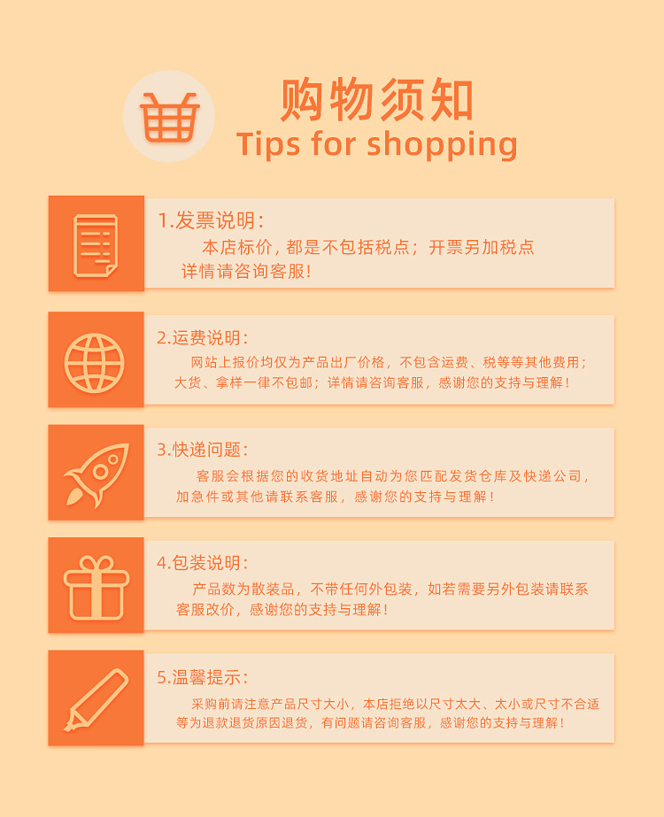 关于退货请各位买家拍下前一定要看清楚产品的详情、尺寸,不了解的可以咨询客服人员。非产品质量问题的不接受退货,谢谢各位的合作。