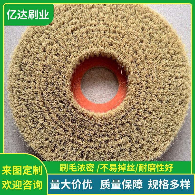 圆盘刷的特点: 1、耐酸碱性好,耐化学有机溶剂好,不破坏原有表面光溶度,刷毛吸水量低,适合干湿条件下的研磨。 2、耐久性,刷毛强韧,使用时间长。 3、刷毛强度.,强性佳,双曲面,凹凸面,各种表面都能充分均匀的研磨。 制造品种全欢迎选购 【有关刷丝的知识】: 1、PP)刷丝,具有耐酸碱等特性,但弹性不是很好,长时间工作容易变形难于恢复,所以适用于工业除尘和清洗中针对较粗犷的部件,比如矿山码头的除尘,环卫车的扫地刷等等2、610(PA66、PA6)刷丝K磨损性能较好,具有耐.温耐酸碱等特性,弹性较好,适用于家庭除尘和清洗中毛刷部件,比如吸尘器滚刷、毛刷辊、毛刷平台等等; 3、612或尼龙1010的弹性好,外观有比较出色的表现,抗冲击等性能也好,适合用于工业设备及门窗等防尘部; 4、丝的弹性较尼龙刷丝要好,PBT的性能较软,适用于精细部件的清洗去污,比如汽车表面清洗,空调风管清洗等等; 5、丝是几类刷丝中较柔软的刷丝,常应用于汽车清洁刷上,加上起绒工艺,便于对汽车漆面的保护; 6、PCB的表面处理、镀锌板酸洗线,以及金属加工、抛光去毛刺等方面使用;