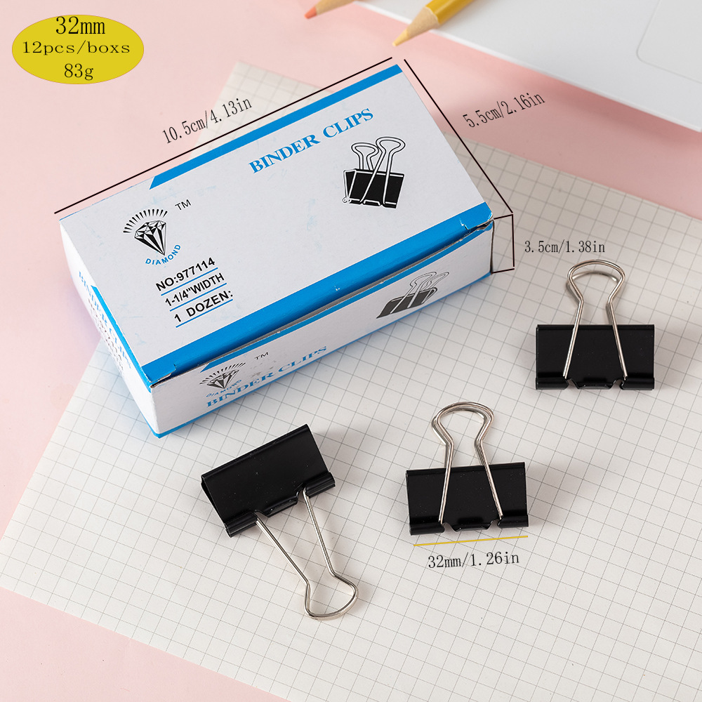 | NO:88032 | 32mm黑色长尾夹 | 12只*120盒 | 57*25*24 cm | 11/10 kgs |