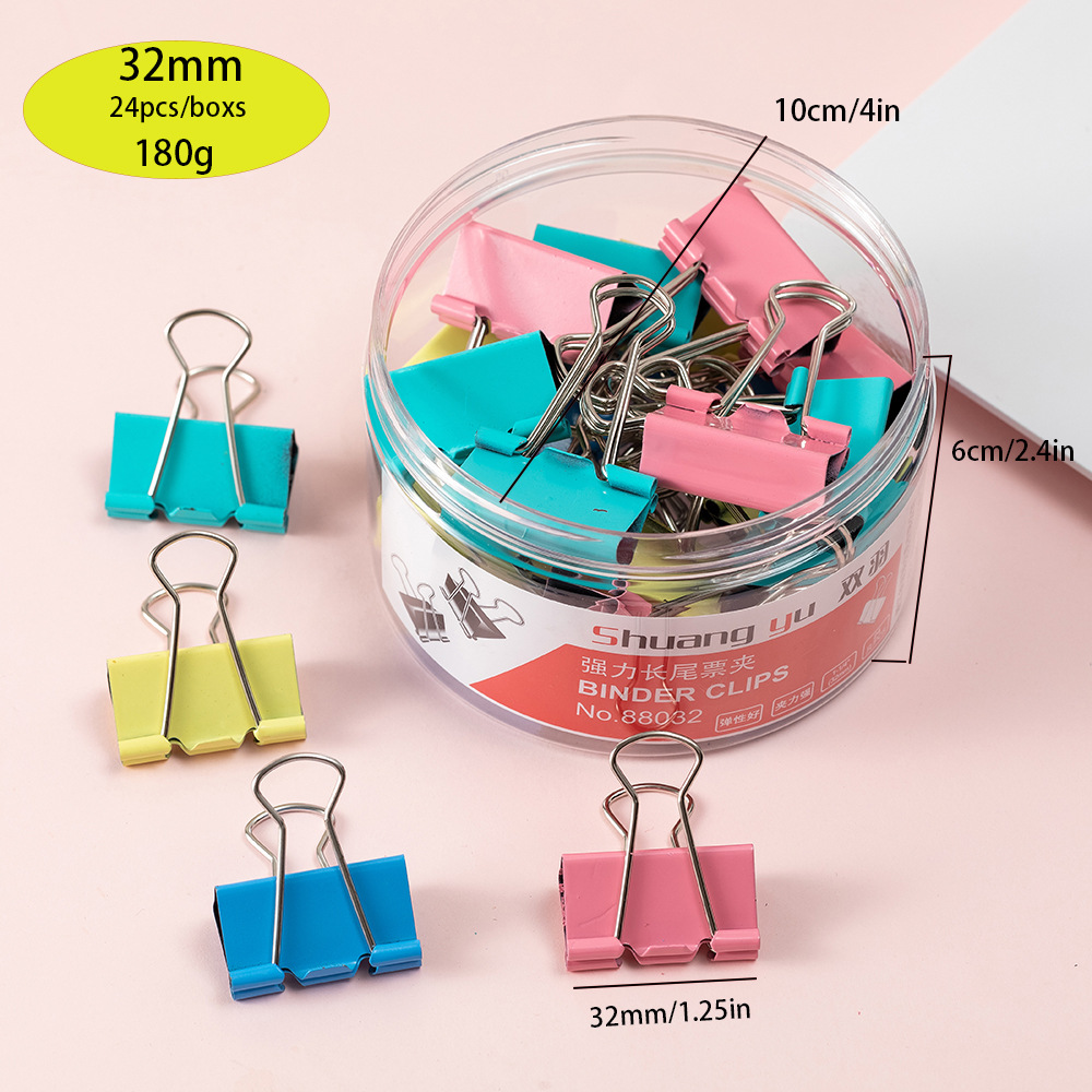 | NO:8832 | 32mm彩色长尾夹 | 24只*48桶 | 41*31*26 cm | 10/9 kgs |