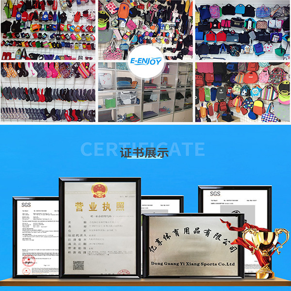 亿享体育用品有限公司是一家集生产加工、商业服务的个体经营,主营潜水料产品、瓶套、杯套、电脑包、USB保温杯套、IPAD包、相机包、CD包、手机套、高尔夫球杆套、餐包、旅行袋、眼镜包、化妆品袋等。 是一家经国家相关部门批准注册的企业。本公司以雄厚的实力、合理的价格、优良的服务与多家企业建立了长期的合作关系。