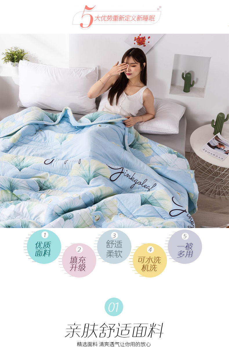 정리] 세탁면 여름 시원한 이불 에어컨 이불 얇은 봄과 가을 이불 어린이 이불 기계 세척 싱글 더블 편안한 통기성