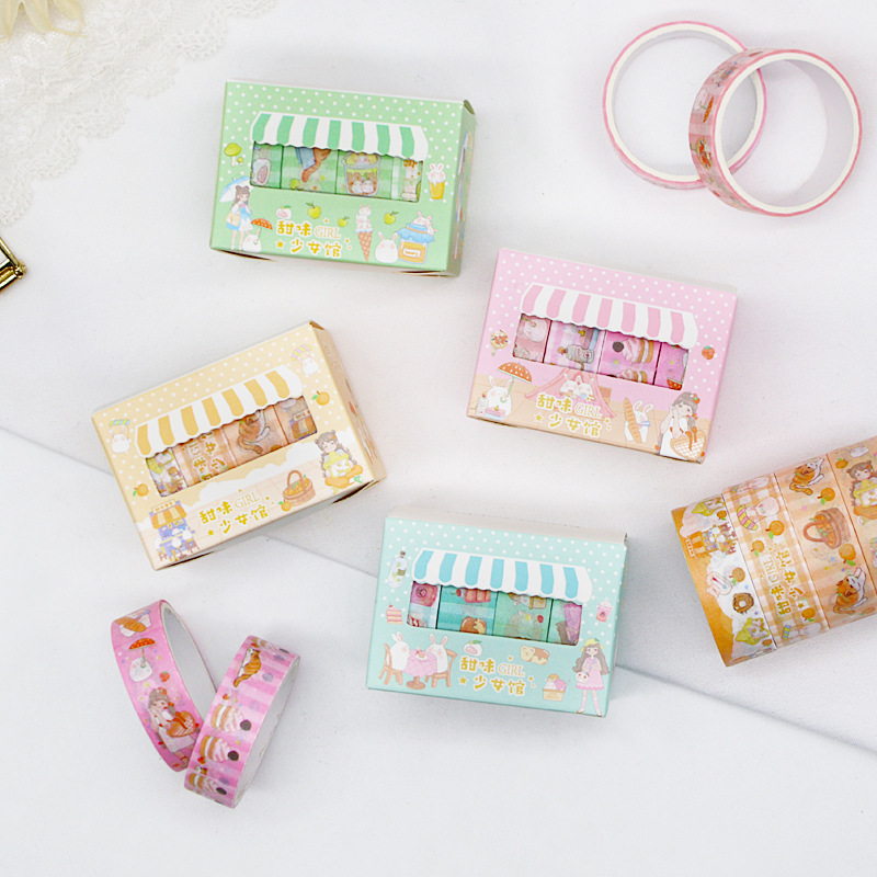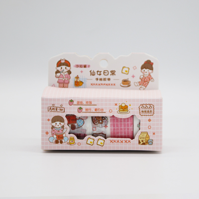 새로운 손 계정과 종이 테이프 선물 상자 세트 만화 핑크 소녀 손 계정 스티커 재료 장식 그림스토어 가기
