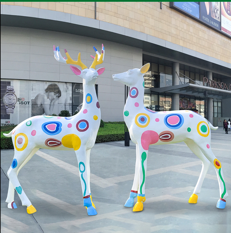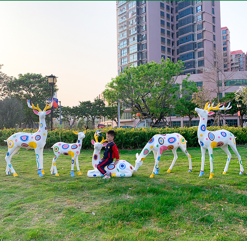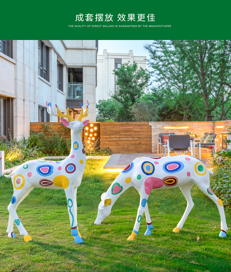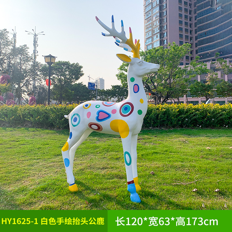 추상 손으로 그린 시카 사슴 조각 엘크 야외 정원 풍경 스케치 장식 장식품 유리 섬유 강화 플라스틱 정원 잔디