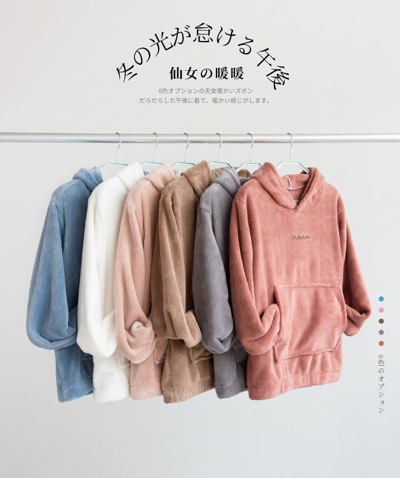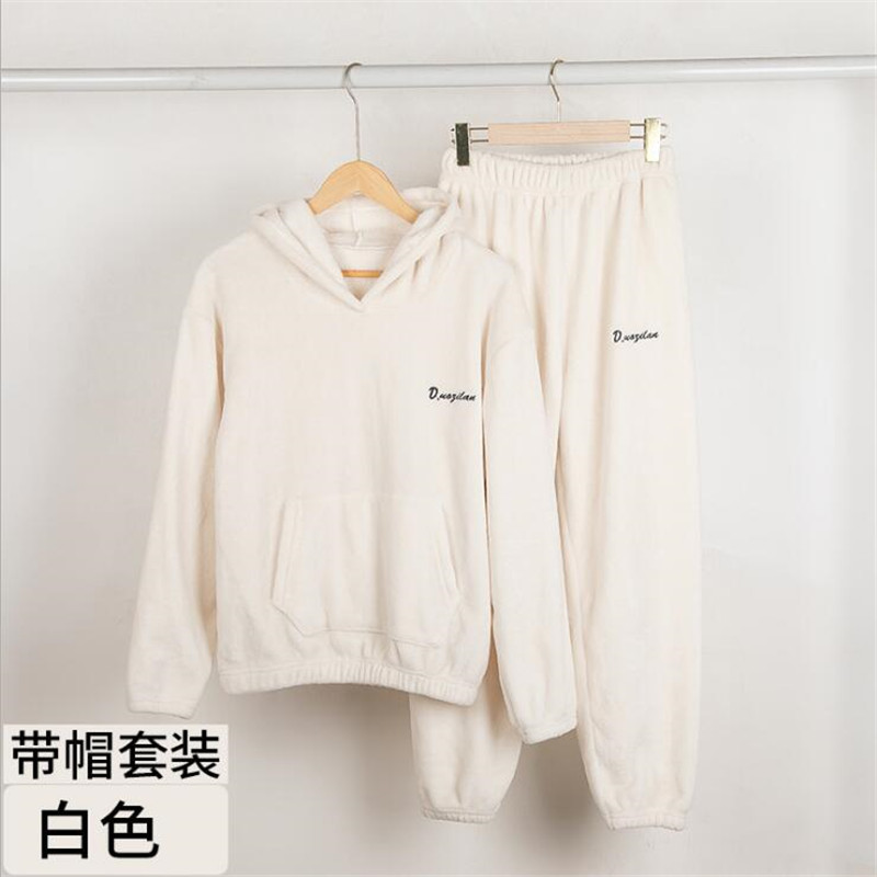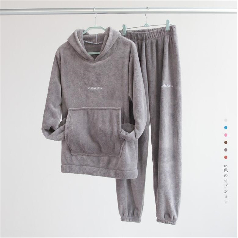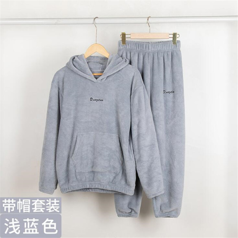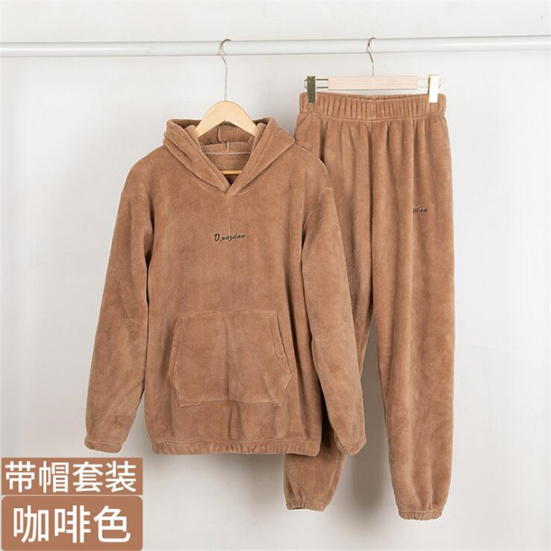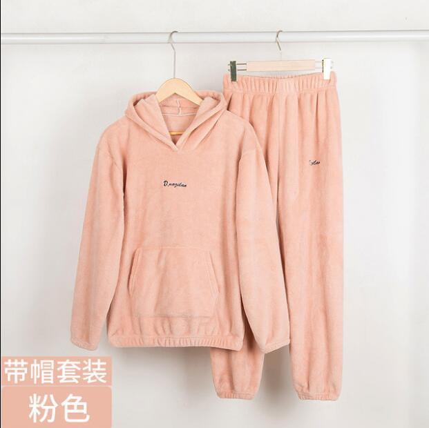 잠옷 여자의 가을과 겨울 기모 두꺼운 산호 양털 웨어러블 홈 웨어 면 따뜻한 슈퍼 두꺼운 따뜻한 세트 커플스토어 가기