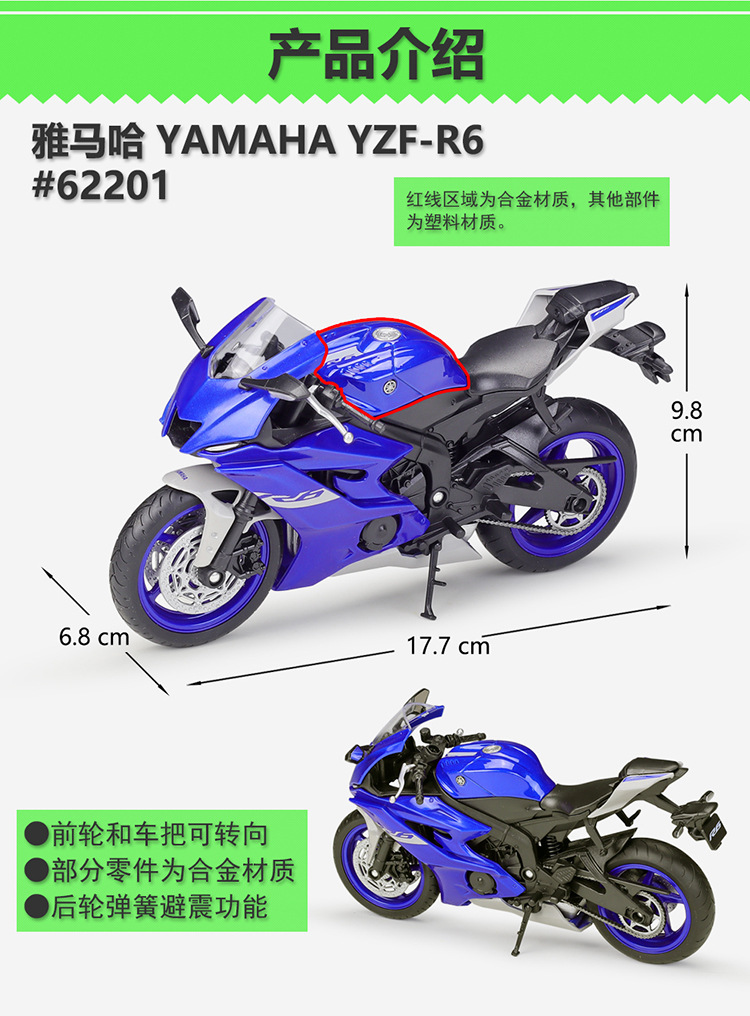 웰리 윌리 1:12 야마하 2020 YZF R6 무거운 기관차 합금 오토바이 시뮬레이션 모델 장난감스토어 가기