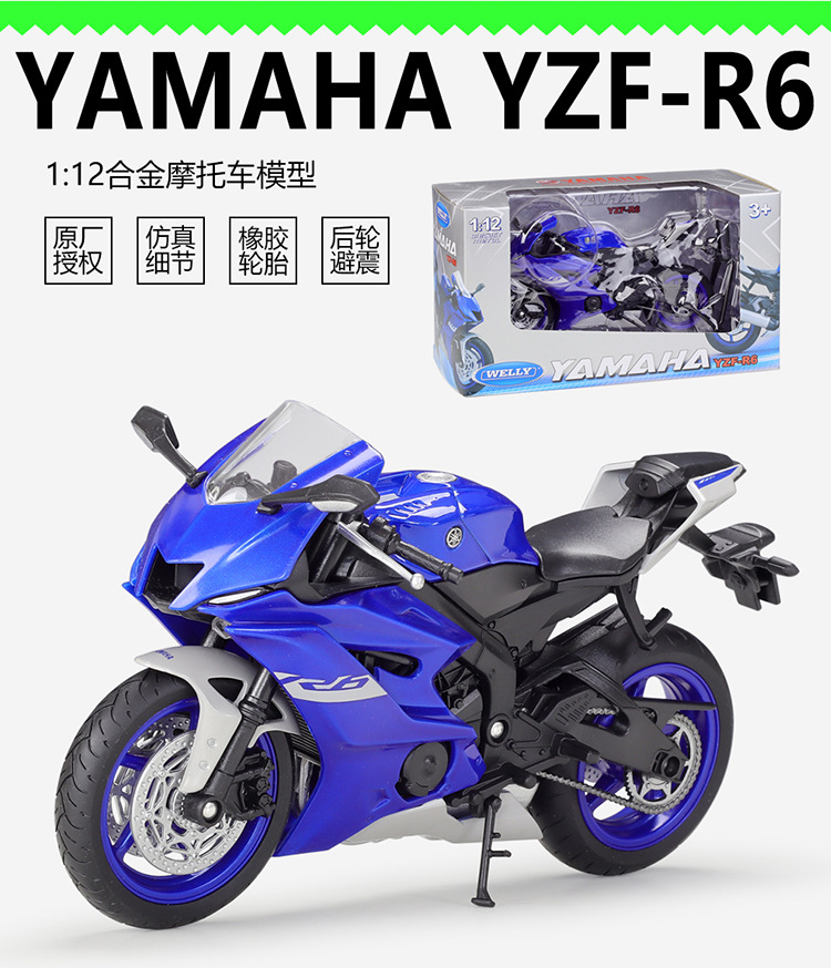 웰리 윌리 1:12 야마하 2020 YZF R6 무거운 기관차 합금 오토바이 시뮬레이션 모델 장난감