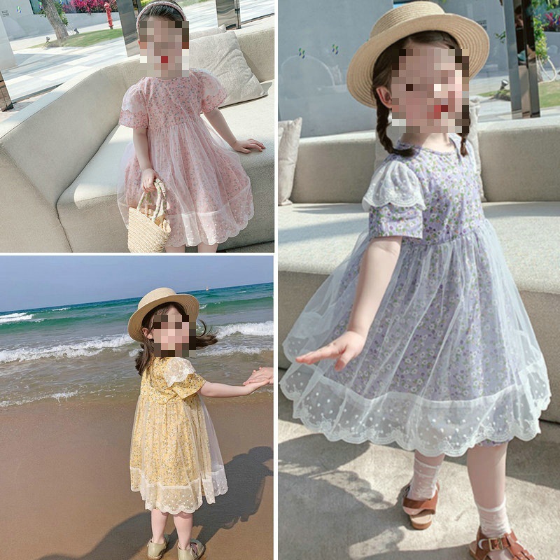 여아용 메쉬 꽃무늬 반팔 원피스 공주 드레스 25 여름 신상품 수출 아동복 3-8세