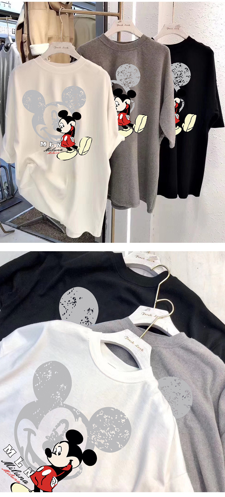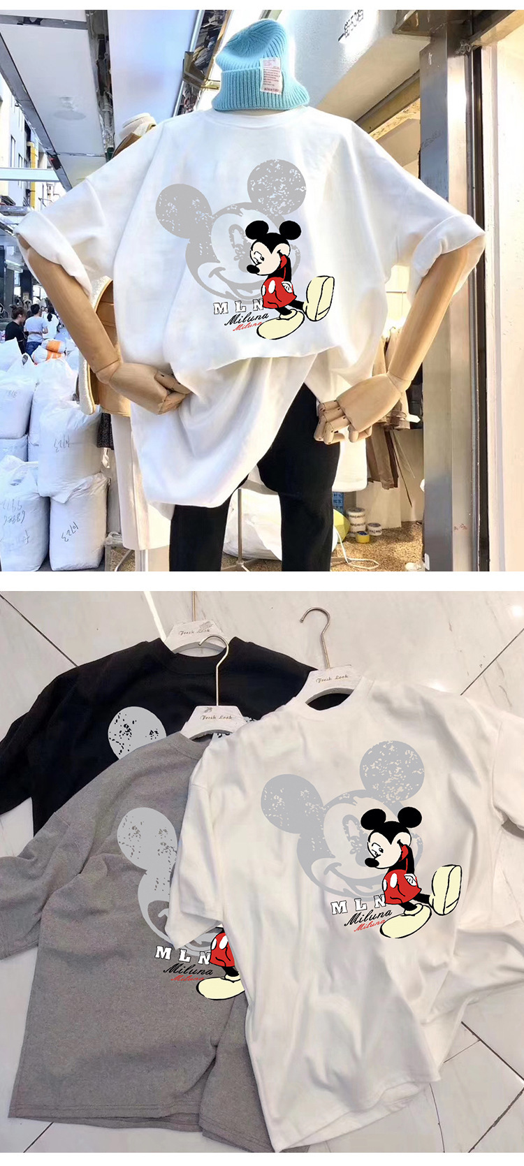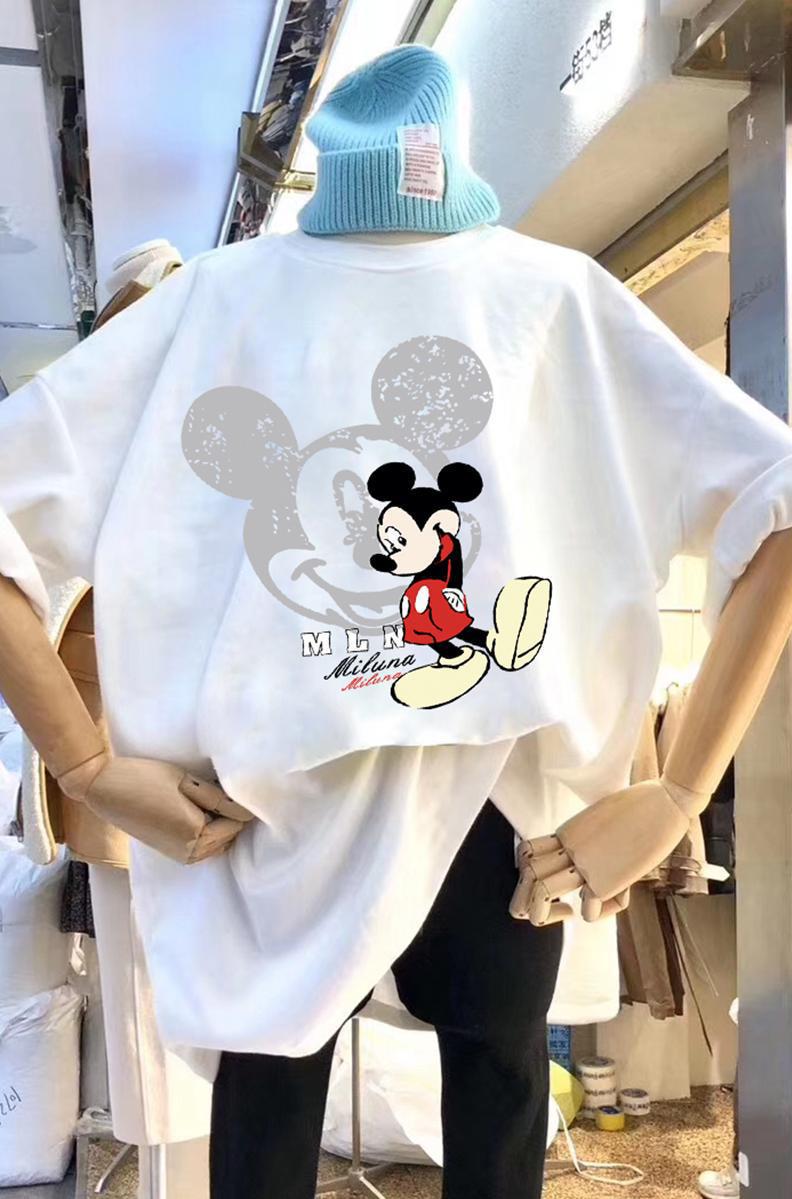 유럽 여성복 해외 무역 트렌드 2026 신상 프린트 루즈핏 카툰 티셔츠 여성 반팔 베이직 티셔츠 봄 여름 티셔츠스토어 가기