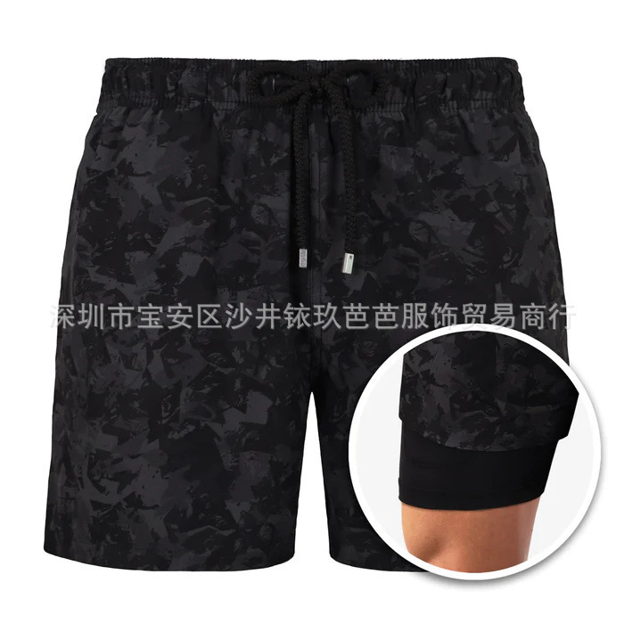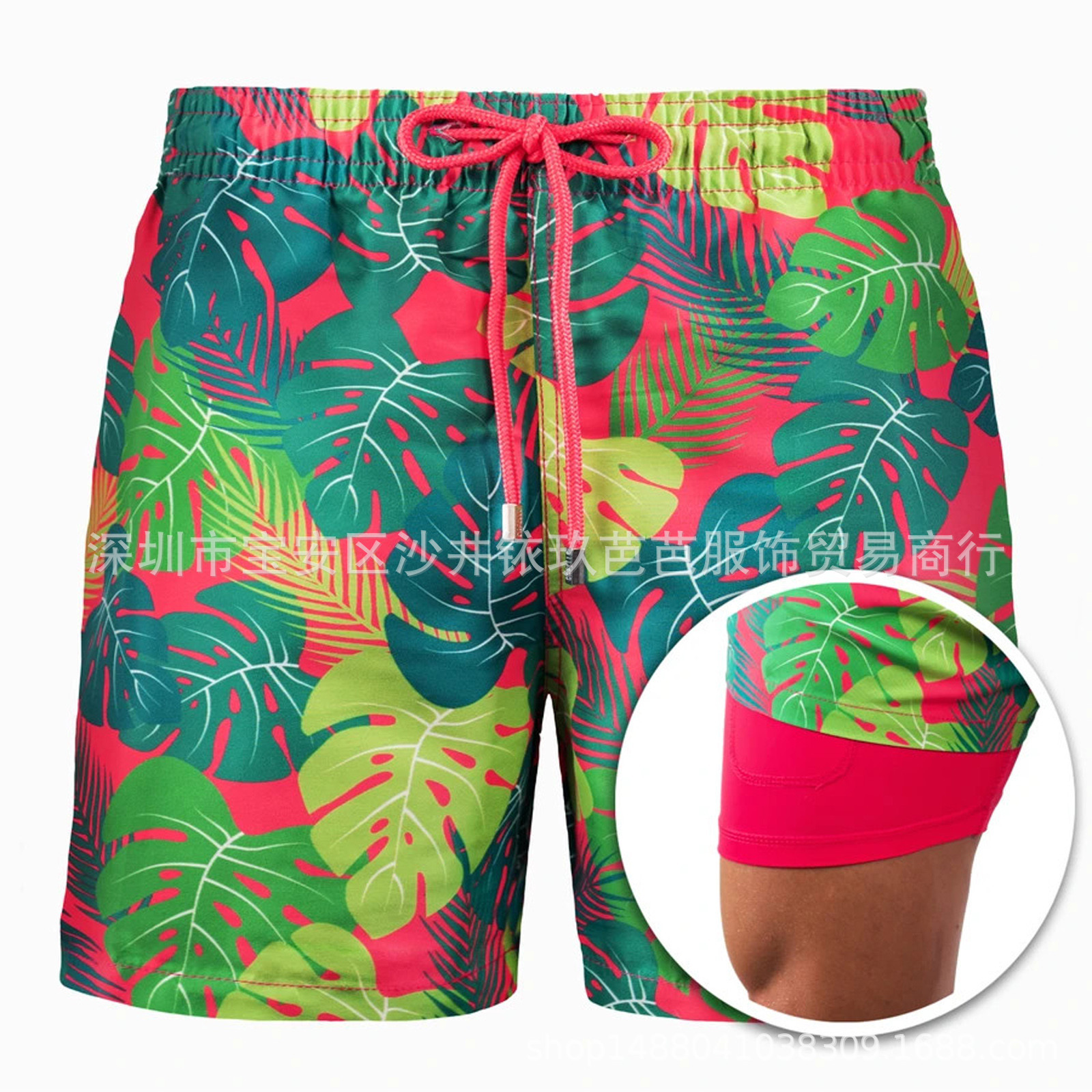 크로스 보더 2023 여름 유럽 및 미국 남성용 비치 팬츠 스포츠 인쇄 더블 반바지 제품 업그레이드 포켓 배수스토어 가기