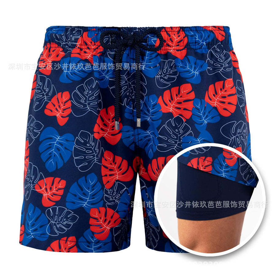 크로스 보더 2023 여름 유럽 및 미국 남성용 비치 팬츠 스포츠 인쇄 더블 반바지 제품 업그레이드 포켓 배수