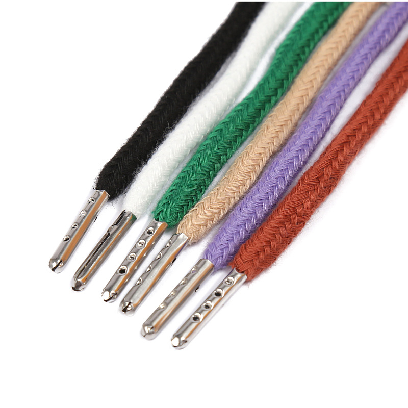 재고 금속 헤드 6mm 너비 1.3 M 컬러 폴리 에스테르 라운드 로프 꼰 로프 허리 로프 스웨터 드로 스트링 모자 로프 도매