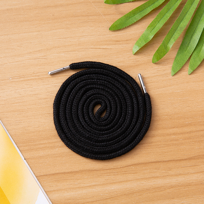 现货16锭1.3米黑白色包芯涤棉圆绳 金属头卫衣带子裤腰带抽绳批发