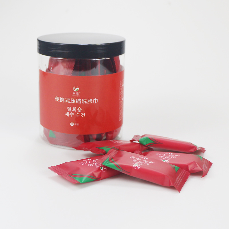 일회용 압축 수건 압축 얼굴 수건 사탕 얼굴 수건 클렌징 수건 여행 가방 제조 업체 로고 개발스토어 가기