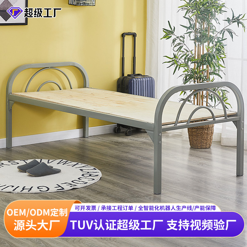 단일 판자 철 프레임 침대 간단한 직원 기숙사 성인 철 침대 아파트 침실 철 침대 사무실 점심 휴식 침대스토어 가기