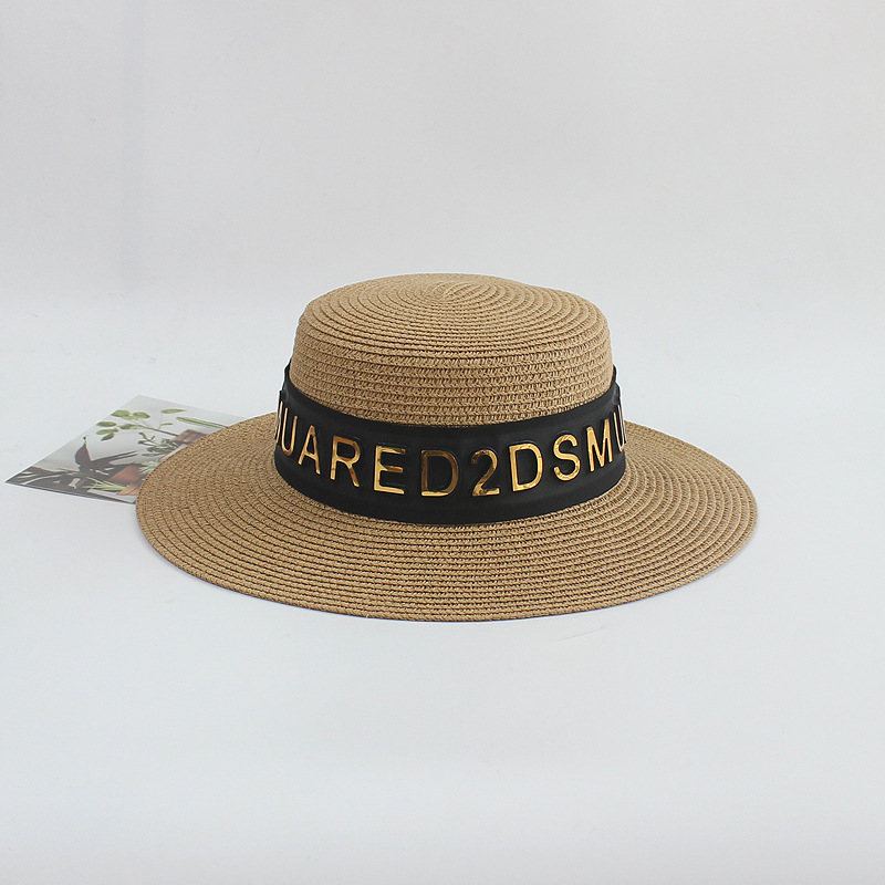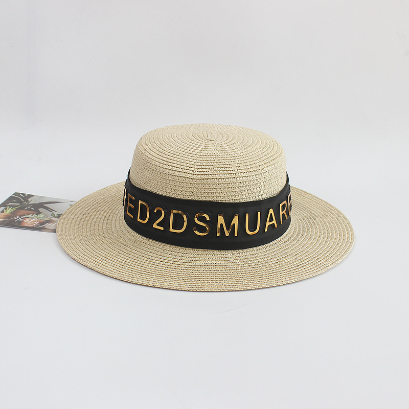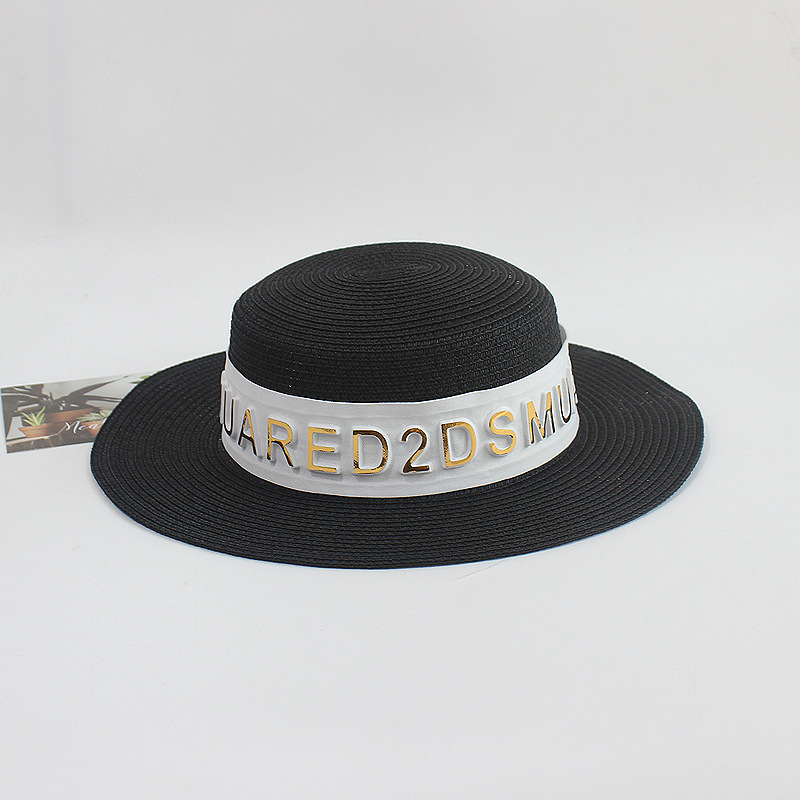 프랑스 영국 스타일 봄과 여름 편지 리본 작은 탑 모자 큰 리본 플랫 탑 패션 휴가 차양 밀짚 모자스토어 가기