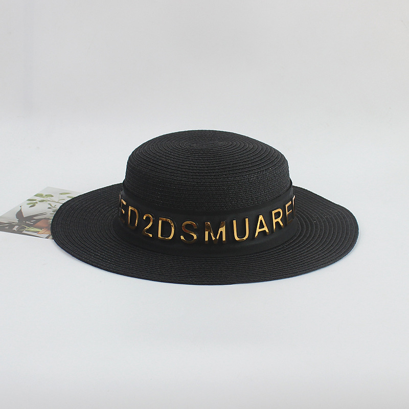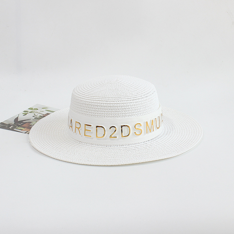 프랑스 영국 스타일 봄과 여름 편지 리본 작은 탑 모자 큰 리본 플랫 탑 패션 휴가 차양 밀짚 모자