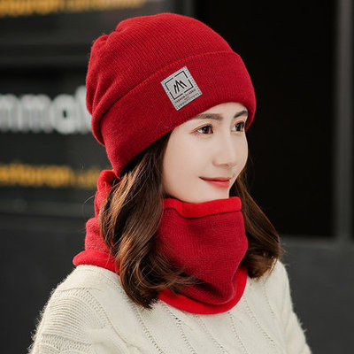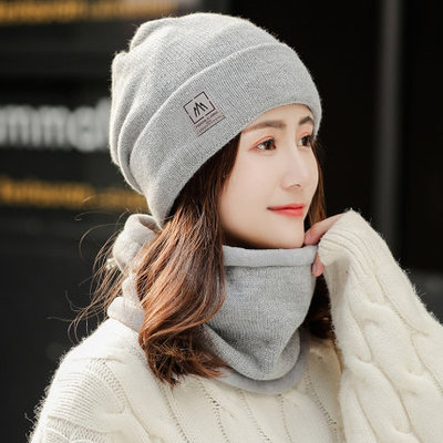 모자 턱받이 투피스 모자 겨울 기모 두꺼운 사이클링 따뜻한 방한 귀 보호 니트 울 모자 여성용스토어 가기