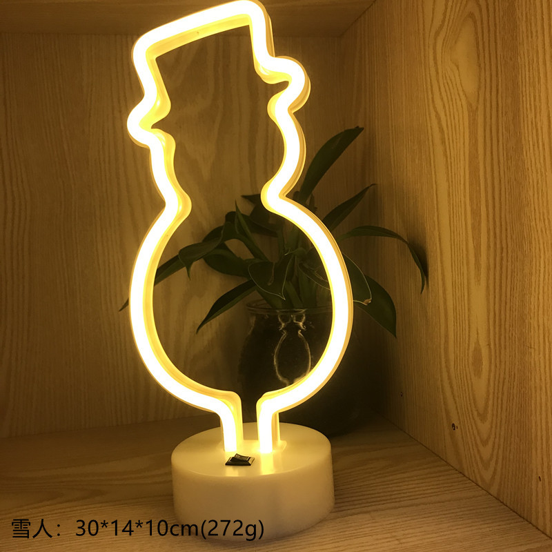 크로스 보더 LED 데스크탑 네온 라이트 등고선 빛 고양이 모델링 라이트 플라밍고 기지 야간 조명 장식 조명 눈사람 I